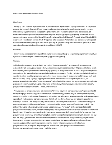 ITA-111 Programowanie zespołowe Opis kursu Niniejszy kurs