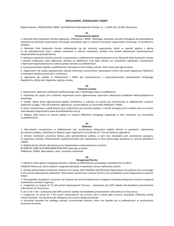 regulamin „półkolonii z bkkk” - Bielański Klub Karate Kyokushin