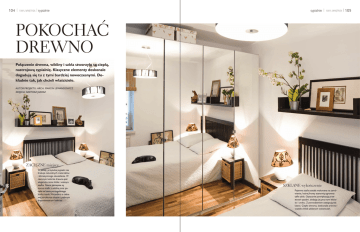 104 100% WNĘTRZA sypialnie sypialnie 100% WNĘTRZA POKOCHAĆ DREWNO Połączenie drewna, wikliny i szkła stworzyło tą ciepłą, nastrojową sypialnię. Klasyczne elementy doskonale dogadują się tu z tymi bardziej nowoczesnymi. Dokładnie tak, jak chcieli właściciele. AUTOR PROJEKTU: ARCH. MARCIN LEWANDOWICZ ZDJĘCIA: BARTOSZ JAROSZ ZACISZNE miejsce W jasnej, przytulnej sypialni nie brakuje naturalnych materiałów i klimatycznego oświetlania. W ciemnym kolorze drewna jest elegancka rama łóżka i wisząca szafka. Nieco jaśniejsze są nocne szafki z wikliną oraz panele na bazie portugalskiego korka marki Wicanders o ciekawej strukturze słojów i pięknym brązowoszarym kolorze. SZKLANE wykończenie Pojemna szafa została wykonana na zamówienie, której fronty stanowią ogromne tafle szkła. Optycznie powiększają przestrzeń sypialni, dodając jej przy tym lekkości i uroku. Z powodzeniem zastępują też lustro. Ciepło drewna, doskonale zrównoważyło chłód szklanych wykończeń. 105