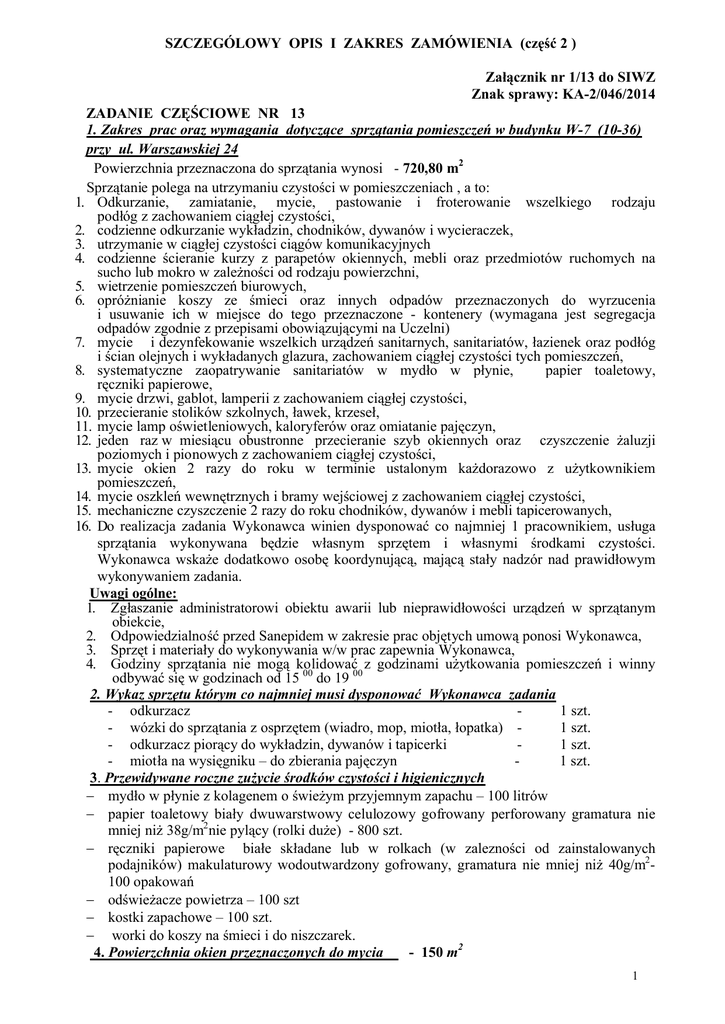 1. Zakres prac oraz wymagania dotyczące sprzątania pomieszczeń w budynku W-7 (10-36)