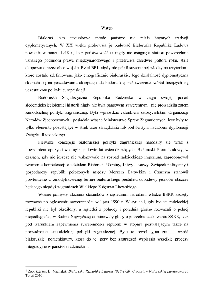 Wstęp Białoruś jako stosunkowo młode państwo nie