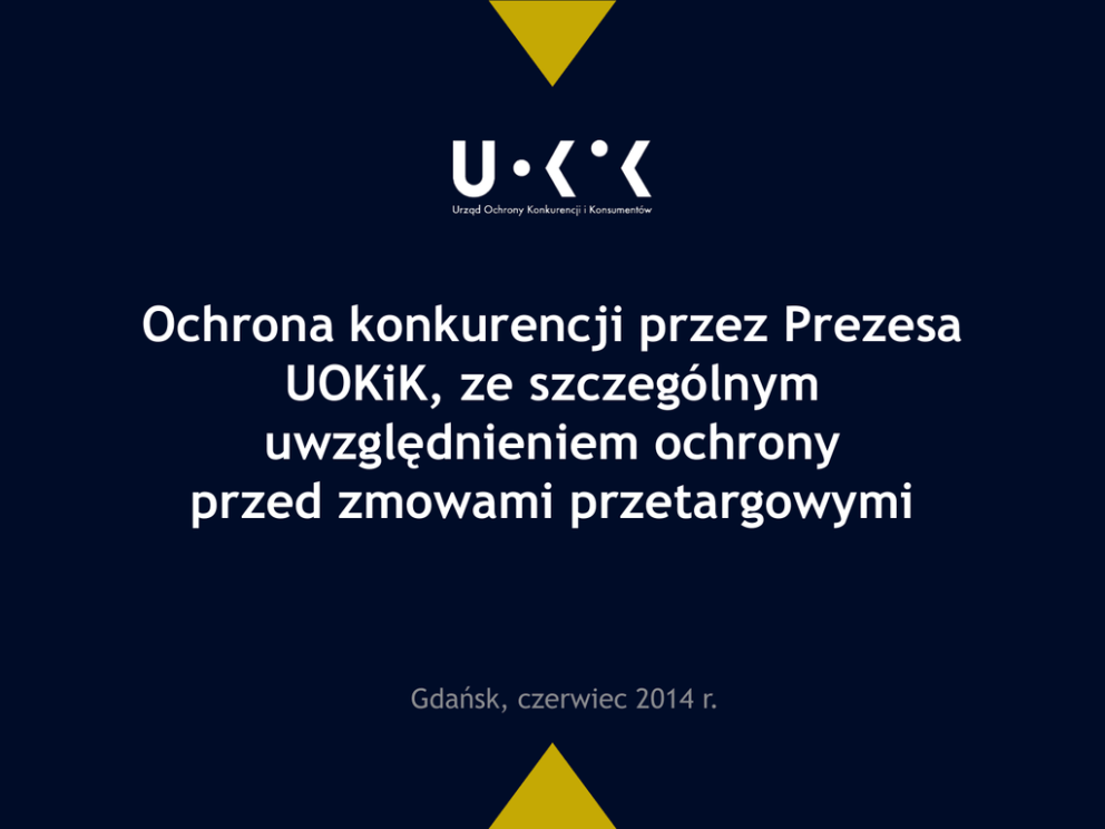 Ochrona konkurencji przez Prezesa UOKiK, ze szczególnym uwzględnieniem ochrony przed zmowami przetargowymi Gdańsk, czerwiec 2014 r. PLAN WYSTĄPIENIA • • • • • • Zwalczanie zmów przetargowych na tle kompetencji Prezesa UOKiK Instrumenty służące zwalczaniu zmów przetargowych Zakres zakazu zmów przetargowych w prawie konkurencji (przepisy i praktyka ich stosowania) Mechanizmy zawierania zmów przetargowych Metody wykrywania zmów przetargowych Podejrzenie zmowy – co dalej? Zwalczanie zmów przetargowych na tle kompetencji Prezesa UOKiK Kompetencje Prezesa UOKiK art. 29 ust. 1 ustawy z 16.02.2007r. o ochronie konkurencji i konsumentów (Dz.U. Nr 50, poz. 331 ze zm.) Prezes Urzędu Ochrony Konkurencji i Konsumentów jest centralnym organem administracji państwowej właściwym w sprawach ochrony konkurencji i konsumentów Odpowiada bezpośrednio przed Prezesem Rady Ministrów. Powoływany jest przez niego spośród osób wyłonionych w drodze otwartego i konkurencyjnego naboru. Do kompetencji Prezesa UOKiK należy m.in..: kształtowanie polityk: ochrony konkurencji i ochrony konsumentów . Kompetencje Prezesa UOKiK Kompetencje Prezesa UOKiK w zakresie przeciwdziałania praktykom ograniczającym konkurencję – realizują funkcję ochronną organu antymonopolowego przed takimi praktykami przedsiębiorców, które ograniczają swobodę działalności gospodarczej innych przedsiębiorców b. ochronie podlega konkurencja jako zjawisko o charakterze instytucjonalnym, charakteryzujące funkcjonowanie gospodarki. Dobrem objętym ochroną jest samo istnienie konkurencji jako atmosfery, w jakiej prowadzona jest działalność gospodarcza Kompetencje Prezesa UOKiK - Intensyfikacja działań w celu zwalczania zmów przetargowych: jeden z priorytetów działania Urzędu wg „Polityki Konkurencji na lata 2011-2013”, dokumentu przyjętego przez rząd RP w maju 2011 r., (Poziom I. Obszar A. Priorytet 1.) oraz projektu „Polityki Konkurencji na lata 2014-2018” Instrumenty służące zwalczaniu zmów przetargowych Kompetencje Prezesa UOKiK Zmowy przetargowe – delikt administracyjny prawa ochrony konkurencji Administracyjno-prawny tryb ścigania naruszenia (wstępne) postępowanie wyjaśniające w sprawie badania rynku mające na celu wstępne ustalenie, czy doszło do naruszenia przepisów ustawy (właściwe) postępowanie antymonopolowe Kompetencje Prezesa UOKiK Źródła informacji o zmowach / dowodów zmów monitoring i badania rynku sygnały od uczestników rynku wnioski uczestników zmowy o odstąpienie od wymierzenia kary pieniężnej lub jej złagodzenie (zasady funkcjonowania „programu łagodzenia kar” jako swoistej antymonopolowej instytucji „świadka koronnego” - art. 109 u.o.k.k.) Kompetencje Prezesa UOKiK Sankcje z tytułu naruszenia zakazu sankcje administracyjne środki tymczasowe dla zapobieżenia skutkom uprawdopodobnionej praktyki – art. 89 u.o.k.k. nakaz zaniechania przez przedsiębiorcę stwierdzonej praktyki – art. 10 u.o.k.k. możliwość przyjęcia zobowiązania przedsiębiorcy – art. 12 u.o.k.k. sankcje administracyjno-karne (fakultatywna) kara pieniężna do 10% rocznego przychodu przedsiębiorcy – uczestnika porozumienia W Wyjaśnieniach Prezesa UOKiK w sprawie ustalania wysokości kar pieniężnych zmowy przetargowe uznano za najcięższe naruszenia konkurencji… Kompetencje Prezesa UOKiK Terminy przedawnienia: - „Nie wszczyna się (…) postępowania, jeżeli upłynęło 5 lat od końca roku, w którym dopuszczono się naruszenia przepisów ustawy” (art. 76 u.o.k.k.) - „Nie wszczyna się postępowania w sprawie stosowania praktyk ograniczających konkurencję, jeżeli od końca roku, w którym zaprzestano ich stosowania, upłynął rok” (art. 93 u.o.k.k. – projekt nowelizacji u.o.k.k. zakłada wydłużenie tego terminu do 5 lat) Zakres zakazu zmów przetargowych w prawie konkurencji (przepisy i praktyka ich stosowania) Co to są zmowy przetargowe • Zmowy przetargowe to szczególna kategoria zakazanych porozumień ograniczających konkurencję, tj.: „porozumień, których celem lub skutkiem jest wyeliminowanie, ograniczenie lub naruszenie w inny sposób konkurencji na rynku właściwym…” (art. 6 ust. 1 u.o.k.k.) Co to są zmowy przetargowe • W świetle przepisów prawa antymonopolowego (art. 6 ust. 1 pkt 7 u.o.k.k.) zmowy przetargowe to: (i) uzgodnienia (ii) między: - przedsiębiorcami przystępującymi do przetargu - lub między tymi przedsiębiorcami i przedsiębiorcą będącym organizatorem przetargu (iii) dotyczące warunków składanych ofert, w szczególności zakresu prac lub ceny” Co to są zmowy przetargowe • Zmowa przetargowa to jeden z najcięższych przejawów zakazanych porozumień: • w świetle przepisów prawa antymonopolowego; zakaz porozumień (art. 6 uokk) dotyczy zmów przetargowych niezależnie od wysokości udziału rynkowego uczestników zmowy (art. 7 ust. 2 uokk) • w świetle orzecznictwa antymonopolowego [np. wyrok SN z 14.01.2009, III SK 26/08] Co to są zmowy przetargowe 1. Co na gruncie prawa antymonopolowego stanowi zakazaną zmowę przetargową: – jakich podmiotów dotyczy zakaz zmów przetargowych? – jakie działania mogą stanowić „porozumienie”? – kiedy uzgodnienia są zakazane (kiedy mogą ograniczać konkurencję)? Co to są zmowy przetargowe • Jakich podmiotów dotyczy zakaz zmów przetargowych? – na podstawie przepisów prawa antymonopolowego zakazane są porozumienia między przedsiębiorcami – zastosowanie zakazu wymaga wykazania stosowania praktyki przez przedsiębiorców – …i choć zawsze wiąże się ona z konkretnymi działaniami konkretnych osób fizycznych (np. członków zarządu, kierowników, handlowców etc.), to nie jest konieczne przypisanie praktyki tym osobom oraz wykazanie ich winy Co to są zmowy przetargowe – w prawie antymonopolowym stosowana jest szeroka definicja przedsiębiorcy (art. 4 pkt 1 u.o.k.k.) obejmująca podmioty fa