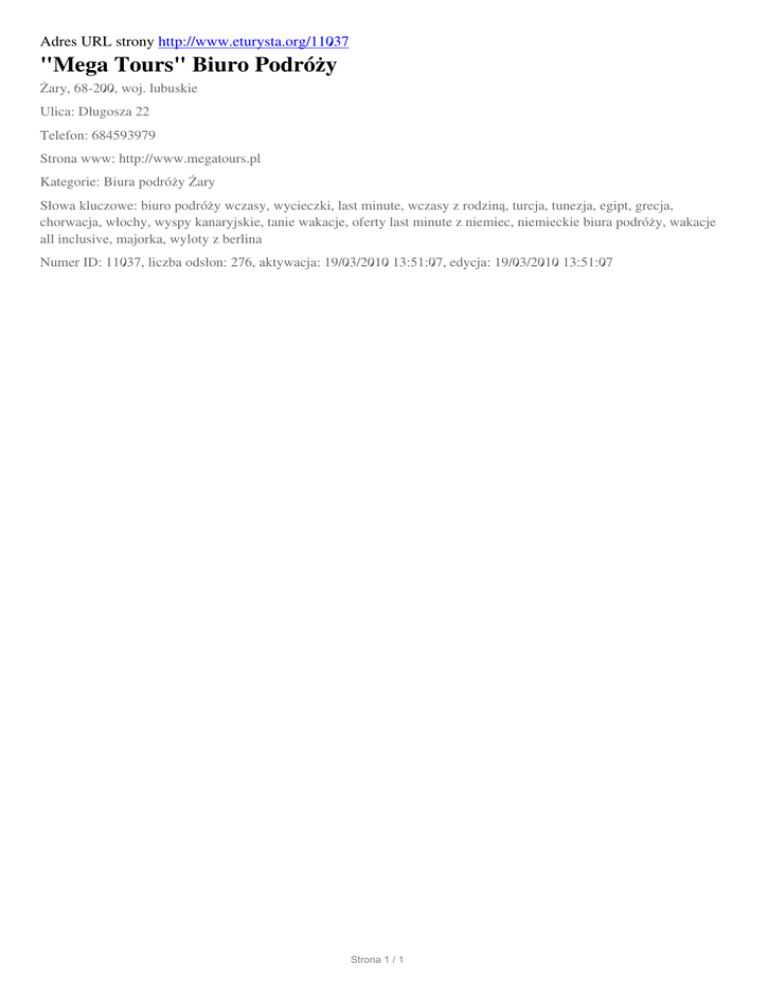 "Mega Tours" Biuro Podrozy, Zary, Dlugosza 22