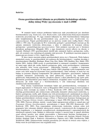 Rafał Kot Ocena georóżnorodności klimatu na przykładzie fordońskiego odcinka doliny dolnej Wisły i jej otoczenia w skali 1:25000 Wstęp W ostatnich latach ważnym problemem badawczym nauk przyrodniczych jest określenie bioróżnorodności (ang. biodiversity, niem. Biodiversität), czyli zóżnicowania biotycznych elementów środowiska przyrodniczego. W ciągu ostatnich kilkunastu lat, obok bioróżnorodności funkcjonuje także komplementarna dla niej georóżnorodność (ang. geodiversity, niem. Geodiversität, ros. георознообразие). Pojęcie georóżnorodność po raz pierwszy zostało użyte według Burek i Potter (2002) w 1991 roku. Na początku lat 90 w środowisku geologów i geomorfologów używano go dla opisania zmienności środowiska abiotycznego, a także w odniesieniu do koncepcji ochrony geologicznej i geomorfologicznej (geoconservation). Takie podejście nazywane jest w literaturze kierunkiem geologicznym (Mizgajski 2001), a jego dynamiczny rozwój odbywa się obecnie w Australii. Eberhard (1997) georóżnorodność określił jako zmienność budowy geologicznej, rzeźby, gleb, ich systemów oraz zachodzących pomiędzy nimi procesów. W podobnym znaczeniu pojęcie to pojmowane jest również w USA i Anglii (Gray 2004). W nieco innym znaczeniu pojęcia georóżnorodność używa się w Niemczech. Wielu badaczy niemieckich uważa, że georóżnorodność jest podstawą dla bioróżnorodności i wspólnie decydują o ekoróżnorodności (Barthlott, Biedinger, Braun, Feig, Kier, Mutke 1999; Barthlott, Kier, Mutke 1999; Jedicke 2001). Jedicke (2000) uważa, że georóżnorodność to zmienność czynników i komponentów tej samej rangi, takich jak: rzeźba, budowa geologiczna, gleby, wody powierzchniowe i podziemne oraz atmosfera, które tworzą przestrzenno - funkcjonalne fizjotopy, a wspólnie z rozpoznaną bioróżnorodnością – ekosystemy. W innej pracy Jedicke (2001) proponuje wybór komponentów oraz zestaw cech, które mogą być kryteriami oceny georóżnorodności. Autor wskazuje, że może być ona badana na poziomie integracji komponentów lub jednostek (fizjotopów, geosystemów), badanych względem zmienności: przestrzennej (np. katen glebowych), czasowej (np. dynamiki wód gruntowych), funkcjonalnej (np. buforów, przepływu materii), a także jednostkowej (np. typów gleb). Rozumienie georóżnorodności przez badaczy niemieckich, uwzględnia zatem wszystkie komponenty abiotyczne, ale ściśle wiąże je z bioróżnorodnością w celu ostatecznego określenia oraz charakterystyki ekoróżnorodności. Poza dwoma wymienionymi kierunkami badań nad georóżnorodnością, rozwijanymi w krajach anglosaskich i w Niemczech, warto za Mizgajskim (2001) zwrócić uwagę na trzecie podejście badawcze, które rozwinęło się ostatnio w Polsce. Kozłowski (1997, 2002) i Kostrzewski (1998) określają georóżnorodność jako zróżnicowanie całokształtu elementów abiotycznych środowiska, tj. budowy geologicznej, rzeźby, gleb, klimatu oraz wód powierzchniowych i podziemnych na różnych poziomach syntezy przestrzeni geograficznej oraz przy różnym oddziaływaniu człowieka. Na potrzebę badania georóżnorodności zwrócono uwagę w Polsce w Państwowym Instytucie Geologicznym już podczas Programu Ochrony Litosfery realizowanego w latach 1990-1994 (Kozłowski 1992, 1996, 1998, 2000). Pierwsze definicje, metody i zasady badań zaproponowano później w ramach prac nad Programem Ochrony Georóżnorodności, prowadzonym w latach 1996-1999 (Kostrzewski 1997; Kozłowski 1999, 2002). Poza rozpoznaniem zróżnicowania środowiska, ważnym celem tych programów było wskazanie obiektów abiotycznych cennych i wartościowych dla występujących w Polsce krajobrazów, a w badaniach szczegółowszych, niezdegradowanych i reprezentatywnych dla określonych regionów kraju. Badania te realizowano ostatnio w naszym kraju w ramach określenia zasad ochrony geosfery, przy udziale pracowników z Państwowego Instytutu Geologicznego w Warszawie, Uniwersytetu im. Adama Mickiewicza w Poznaniu oraz Instytutu Ochrony Przyrody Polskiej Akademii Nauk w Krakowie (Alexandrowicz, Poprawa (red.) 2000; Gawlikowska 2000; Wróblewski 2000). Zainteresowanie tematyką geoochrony jest obecnie na świecie coraz większe, a Polska wnosi do tych badań nowe oraz oryginalne treści. 258 Rafał Kot Za obszar badań georóżnorodności klimatu przyjęto typowy, dla krajobrazu młodoglacjalnego Niżu Polskiego, fragment doliny dolnej Wisły z charakterystycznymi rozszerzeniami i zwężeniami wraz z jej najbliższym otoczeniem. Powierzchnia obszaru badań wynosi 279,75 km2. Według regionalizacji fizycznogeograficznej Kondrackiego (2000), położony jest on w obrębie czterech makroregionów: Doliny Dolnej Wisły, Pojezierza Południowopomorskiego, Pojezierza ChełmińskoDobrzyńskiego oraz Pradoliny Toruńsko - Eberswaldzkiej, oraz czterech mezoregionów, odpowiednio: Doliny Fordońskiej, Wysoczyzny Świeckiej, Pojezierza Chełmińskiego i Kotliny Toruńskiej (ryc. 1.). W dnie doliny dolnej Wisły, w obrębie badanego fragmentu mezoregionu Doliny Fordońskiej, Gacki i Szukalski (1982) wydzielili sześć mikroregionów, tj.: brucki, kokocki, ostromecki, fordoński, kozielecki i świecki. Ryc. 1. Obszar badań na tle mezoregionów fizycznogeograficznych wg Kondrackiego (2000): 314.52 Pojezierze Starogardzkie, 314.69 Pojezierze Krajeńskie, 314.71 Bory Tucholskie, 314.72 Dolina Brdy, 314.73 Wysoczyzna Świecka, 314.81 Dolina Kwidzyńska, 314.82 Kotlina Grudziądzka, 314.83 Dolina Fordońska, 314.9 Pojezierze Iławskie, 315.11 Pojezierze Chełmińskie, 315.12 Pojezierze Brodnickie, 315.13 Dolina Drwęcy, 315.14 Pojezierze Dobrzyńskie, 315.35 Kotlina Toruńska, 315.55 Równina Inowrocławska Fig. 1. Examined area on the background of the physico-geographical mesoregions acc. to Kondracki (2000): 314.52 Lakeland Starogard, 314.69 Lakeland Krajna, 314.71 Tuchola Forest, 314.72 Brda 