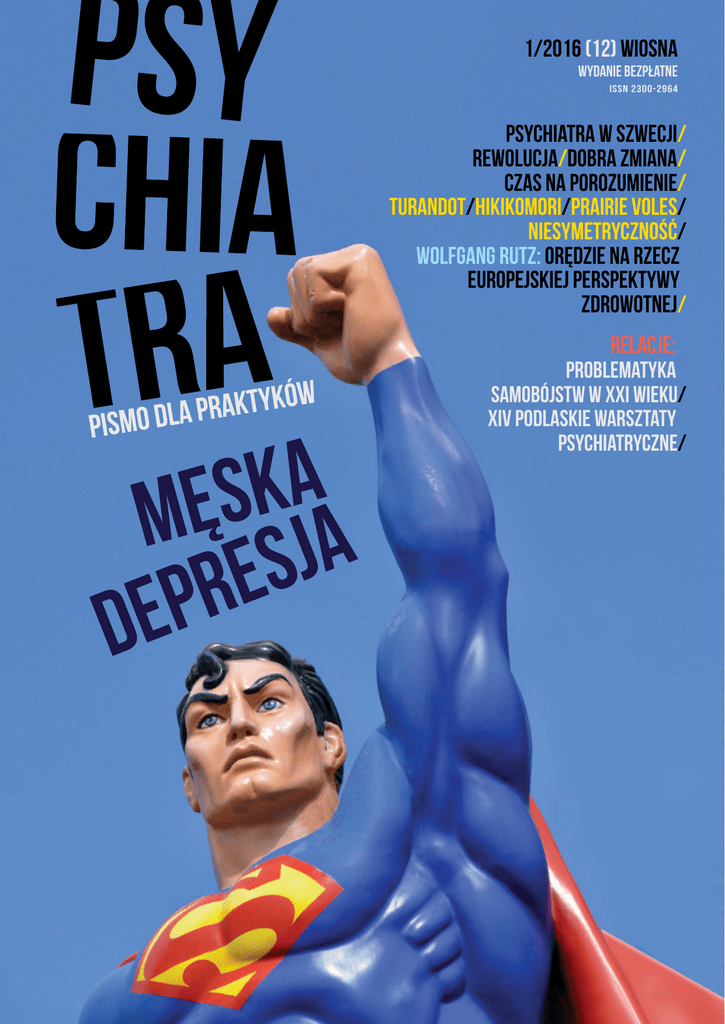 1/2016 (12) wiosna wydanie bezpłatne ISSN 2300-2964 Psychiatra w Szwecji/ Rewolucja/Dobra zmiana/ Czas na porozumienie/ Turandot/Hikikomori/Prairie voles/ Niesymetryczność/ Wolfgang Rutz: Orędzie na rzecz europejskiej perspektywy zdrowotnej/ RELACJE: A K S MĘ JA S E R P DE Problematyka samobójstw w XXI wieku/ XIV Podlaskie Warsztaty Psychiatryczne/ Zdjęcie: Tomasz Stępień Drodzy Czytelnicy ! wiosna 2016/NR 12 PSYCHIATRA ROK 4, zeszyt 3, wiosna 2016 Wydanie/egzemplarze bezpłatne Redaktor Naczelny Tomasz Szafrański (Warszawa) [TSZ] e-mail: [email protected] Współpraca redakcyjna: Kama Pierzgalska (Konstancin-Jeziorna) [KP] Katarzyna Szaulińska (Kolonia Lubeckiego) [KSZ] Dyrektor Artystyczny: Katarzyna Kowalska Wydawca: Witold Szuk Mediadore Ul. Zgoda 13/43 00-012 Warszawa www.mediadore.pl Nakład: 5.000 egz. Numer ISSN: 2300-2964 Warszawa 2016 Nie prowadzimy prenumeraty. Archiwalne numery online na stronie: www.psychiatraonline.com ISSN 2300-2964 PSYCHIATRA nie jest organem żadnego towarzystwa naukowego i nie reprezentuje żadnej instytucji. Pismo nie stara się o Impact Factor, nie jest na liście Ministerstwa Nauki ani na indeksie Kopernika. Opinie wyrażone w artykułach publikowanych w naszym piśmie są poglądami ich autorów formułowanymi bez założenia nieomylności. Publikowane materiały reprezentują opinie ich autora/ autorów i nie należy uważać, że zostały one napisane tak by odzwierciedlać opinię redakcji lub wydawcy jak również, że reprezentują opinię instytucji lub organizacji, z których autorzy pochodzą. Wydawca Mediadore i redakcja nie biorą żadnej odpowiedzialności za szkody lub zniszczenia osób lub własności wynikające z odpowiedzialności za produkty, zaniedbania lub z innych przyczyn ani też z używania bądź stosowania jakichkolwiek metod, produktów, instrukcji czy koncepcji zawartych w niniejszym materiale. Z powodu gwałtownego postępu w naukach medycznych zawsze konieczne jest niezależne weryfikowanie przez lekarza diagnoz, metod leczenia i dawek leków. Wydawca i redakcja nie ponosi odpowiedzialności za treść reklam i ogłoszeń Publikacja ta jest przeznaczona dla osób uprawnionych do wystawiania recept oraz osób prowadzących obrót produktami leczniczymi w rozumieniu przepisów ustawy z dnia 6 września 2001 roku – Prawo farmaceutyczne (Dz. U. Nr 126, poz. 1381, z późniejszymi zmianami i rozporządzeniami). Redakcja nie zwraca materiałów nie zamówionych. Zastrzegamy sobie prawo do skracania i adiustacji tekstów oraz zmiany ich tytułów. © Tomasz Szafrański i Mediadore. Wszystkie prawa zastrzeżone. Żadna część niniejszej publikacji nie może być gdziekolwiek i w jakikolwiek sposób wykorzystywana bez pisemnej zgody Wydawcy. Czy znacie Państwo taką sytuację, w której zaznaczacie coś na urządzeniu z dotykowym ekranem, a po chwili uderzacie na klawiaturze komputera w klawisze Ctrl+V i ze zdziwieniem stwierdzacie, że wkleił się zupełnie inny tekst, niż zaznaczony przed chwilą? Ostatnio próbowałem przekleić w ten sposób pikantny fragment z wywiadu, którego udzieliła Znana Psycholog – wywiad stary, chyba z 2014 roku, ale wciąż „jary” – bo „nic nie ginie w Internetach”. Wypatrzył go zresztą czujnym okiem Znajomy, który dzień wcześniej przeholował z tańcami ludowymi i „rankiem dnia następnego” obawiał się, że dopada go „zimowa depresja”. Początek wywiadu dotyczy rzeczywiście związków pomiędzy samopoczuciem a porą roku. Ale po kilku pytaniach: „KLIK!” – przeskakujemy do innego skryptu, z którego dowiadujemy się, że „Jesteśmy narodem ćpunów, koncerny wmawiają nam choroby i faszerują chemią (...). Przemysł farmaceutyczny usidla ludzi i wciska im tabletki na depresję (…). Producenci leków zarabiają na urojonej depresji (….)”– mówi w wywiadzie Znana Psycholog. A dalej: „(czasem) trzeba iść do lekarza – ale nie miejmy wielkich nadziei, że trafimy do kompetentnego, który zapyta, co się dzieje w naszym życiu. Bo jeśli nie zapyta, tylko od razu zapisze środki przeciwdepresyjne, to produktem tej wizyty będzie kolejny uzależniony”. No i mój ulubiony fragment: „5/6 tabletek to kostka fiksata. Wcale nie działają”. Znana Psycholog nie jest osamotniona w swoich poglądach, nie trzeba daleko szukać, znam także psychiatrów, którzy mówią pacjentom: proszę wybierać – tabletki czy zdrowie? To z gruntu fałszywa dysjunkcja. Niestety, obecna tam, gdzie myślenie kliniczne zastępuje jakaś (często piękna i dobra) ideologia. Ideologia, która „wkleja” nam gotowe poglądy i wyjaśnienia bez względu na okoliczności. W tym numerze Psychiatry publikujemy orędzie na rzecz europejskiej perspektywy zdrowotnej profesora Wolfganga Rutza, wieloletniego doradcę europejskiej sekcji zdrowia psychicznego WHO. Profesor Rutz pisze w nim między innymi jak ważne jest, aby demaskować pozorne konflikty pomiędzy teoriami humanistycznymi a biologicznymi i przeciwdziałać rozłamom pomiędzy terapiami psychoterapeutycznymi a farmakologicznymi, gdyż te konflikty są jedną z przeszkód w rozwoju. Chociaż, niewątpliwie, istnieje zjawisko medykalizacji i psychiatryzacji codziennych ludzkich przeżyć i doświadczeń, to jednak wysoki odsetek chorych na depresję nie jest „bujdą na resorach” i cały czas dużo większym problemem jest nierozpoznawanie depresji, niż jej nadrozpoznawalność. W kontekście (nierozpoznawania i nieleczenia depresji) profesor Rutz zwraca uwagę, że w obliczu przemian społecznych i kulturowych, które przeobrażają gwałtownie część naszego kontynentu, to mężczyźni w porównaniu z kobietami, mają dużo większe trudności w odbudowywaniu sieci społecznych, zachowywaniu poczucia kontroli i sensu życia. Chociaż przyjmujemy, że kobiety częściej chorują na depresję, to mężczyźni wielokrotnie częściej giną śmiercią samobójczą. W jej tle jest przeżywana przez nic