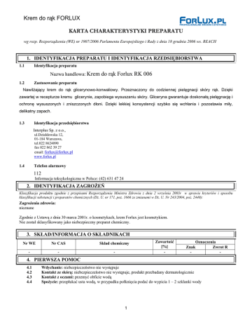 Krem do rąk FORLUX KARTA CHARAKTERYSTYKI PREPARATU