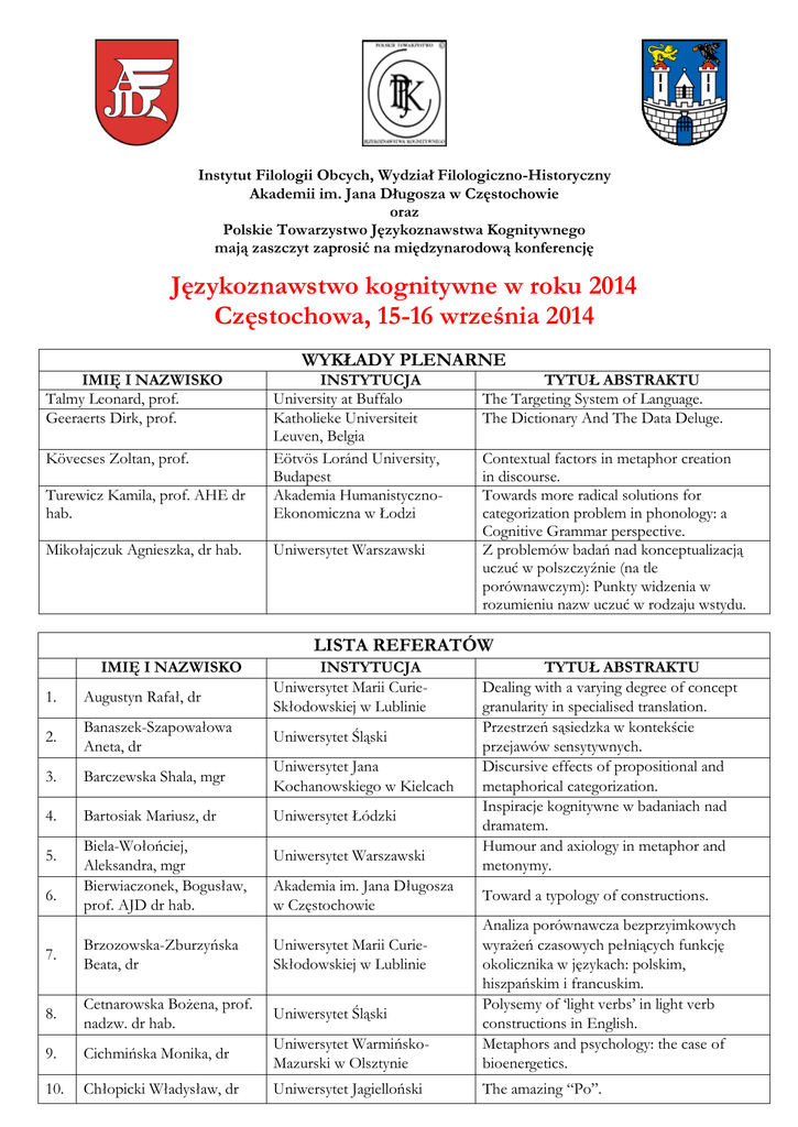 Językoznawstwo kognitywne w roku 2014 Częstochowa, 15