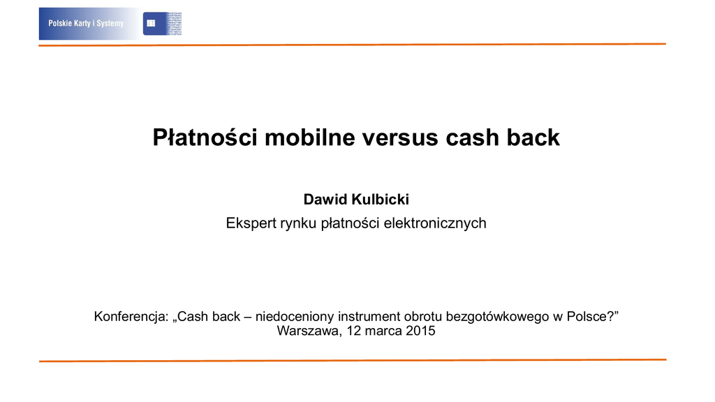 Płatności mobilne versus cash back Dawid Kulbicki Ekspert rynku płatności elektronicznych Konferencja: „Cash back – niedoceniony instrument obrotu bezgotówkowego w Polsce?” Warszawa, 12 marca 2015 Wypłata gotówki - rodzaje Cash back - Powiązany z transakcją płatniczą w punkcie sprzedaży (na dowolną kwotę) - Maksymalna wartość wypłaty gotówki 300 zł - Wysoki interchange fee płacony do acquirera Cash advance - Nie powiązany z transakcją sprzedaży w POS Wypłata w bankomacie - Wyższe limity transakcyjne - Karty płatnicze oraz systemy płatności mobilnych (BLIK, SkyCash, PeoPay) - Tylko dla instytucji finansowych (banki, poczta) - Relatywnie niskie interchange fee płacone do operatora bankomatu Płatności mobilne – różne segmenty Z wykorzystaniem schematów kartowych - Oparte o technologię NFC SE lub HCE (Orange, Tmobile, PeoPay, Apple Pay) albo kody QR (uPaid/MasterPass) lub emisję pola magnetycznego (Samsung Pay) Niezależne systemy płatności - W większości przypadków wykorzystują dynamiczne kody jednorazowe (BLIK, PeoPay, iKasa, mPay, SkyCash) mPOS - Przenośne urządzenia (smartfon+PIN PAD), które mogą służyć do przyjmowania płatności w środowisku mobilnym. Cash back w technologii zbliżeniowej – NFC i karty Cash back w trybie zbliżeniowym jest teoretycznie możliwy Niestety regulacje organizacji kartowych wprost zabraniają stosowania cash backu dla transakcji zbliżeniowych (podobno trwają prace nad dopuszczeniem takich transakcji) Istnieją ograniczenia po stronie infrastruktury akceptacyjnej oraz konfiguracji kart chipowych, ponieważ rozwiązania były tworzone pod niedopuszczalność stosowania cash backu: wykrywanie BIN-u karty po jej włożeniu do czytnika kontaktowego (trudne do zastosowania przy transakcji zbliżeniowej) brak możliwości zdalnego update’u profilu karty – konieczność wymiany kart zbliżeniowych; dla NFC nie powinno być problemu cash back wymaga zawsze transakcji on-line oraz CVM Cash back w niekartowych systemach mobilnych Większość dostawców umożliwia wypłatę gotówki z bankomatu na podstawie wygenerowanego numeru transakcji Nie ma przeciwskazań, aby ta funkcjonalność była wykorzystana także na terminalach POS (będzie to wymagało zmian w systemach acquirerów) Potrzebny jest model wynagradzania acquirerów i detalistów za wykonane transakcje wypłaty gotówki Niezbędne dodatkowe zabezpieczenia transakcji z cash backiem dla Cash back w mPOS Żadna z platform mPOS obecnych w Polsce nie oferuje dzisiaj usługi cash back Nie ma przeciwskazań aby taka funkcjonalność się pojawiła Istnieje problem klienta docelowego oraz adopcji rozwiązania w SME/SOHO Brak drukarki potwierdzeń może być barierą dla upowszechnienia cash back na mPOS Ciekawe rozwiązanie dedykowanych (integracje) dla wdrożeń Samsung Pay – szansa dla cash back W lutym 2015 Samsung przejął spółkę LoopPay, jednocześnie zapowiadając wykorzystanie jej technologii w swoim systemie płatności mobilnych – Samsung Pay Rozwiązanie Samsunga opiera się o emisję, przez smartfon, pola magnetycznego, będącego odpowiednikiem zapisu ścieżki paska magnetycznego karty; pozwala to na dokonanie transakcji zbliżeniowej bez wykorzystywania NFC i technologii contactless Rozwiązanie Samsunga umożliwia wykorzystanie wszystkich istniejących urządzeń do akceptacji kart płatniczych (jedyny wymóg to czytnik kart magnetycznych Takie podejście do płatności kartowej daje ogromną przewagę w kontekście możliwości dokonania transakcji cashback – brak konieczności zmiany procesu w aplikacji płatniczej terminala POS (dla terminala POS jest to zwykła transakcja płatnicza wykonana kartą magnetyczną) Ograniczeniem jest słabe nasycenie telefonami, które będą mogły wykorzystać tę technologię (na dzień dzisiejszy zapowiedziano obsługę tej technologii wyłącznie w najnowszych telefonach Samsung Galaxy S6) Porównanie systemów mobilnych Polski Standard Płatności Pekao S.A. mPay SkyCash P2P ATM POS mPOS eCommerce mCommerce (one click) NFC (HCE) Bankowość mobilna (in-app) . Merchant Payments Ecosystem, February 17-19, Berlin Wnioski Cash back w płatnościach mobilnych jest dużym wyzwaniem technicznoorganizacyjnym Aktualnie cash back, przy płatnościach zbliżeniowych, nie jest możliwy; wprowadzenie obsługi cash back dla kart będzie wymagało wymiany plastiku Dla systemów opartych o NFC migracja nie powinna wiązać się z wymianą karty (daje to przewagę systemom mobilnym nad kartami) Istnieje możliwość rozszerzenia funkcjonalności wypłat bankomatowych dla niekartowych systemów mobilnych o wypłatę gotówki w POS Wymagane będzie opracowanie nowego modelu biznesowego oraz zabezpieczeń dla cash back w niekartowych systemach mobilnych Ciekawą alternatywą może być SamsungPay, który już dzisiaj powinien dawać możliwość wykonania transakcji z cash back Dziękuję za uwagę Dawid Kulbicki [email protected] tel. +48 602 48 46 45