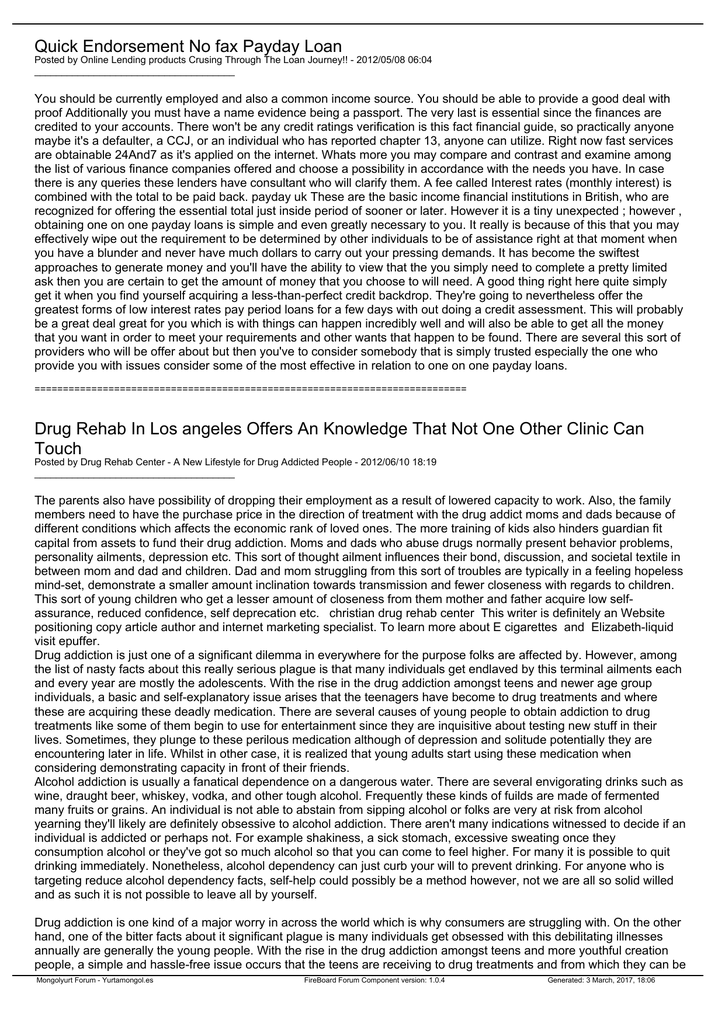 Quick Endorsement No fax Payday Loan Drug Rehab In Los