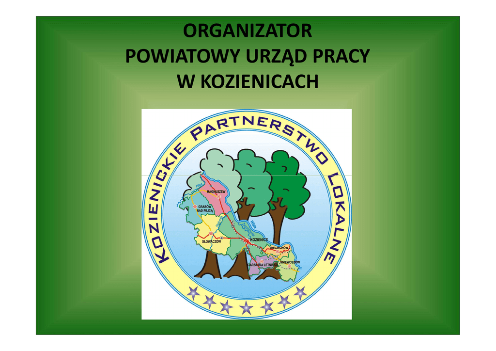 ORGANIZATOR POWIATOWY URZĄD PRACY W KOZIENICACH KOZIENICKIE CENTRUM WSPIERANIA BIZNESU Grupa 1 Lider grupy – Pan Edmund Kordas DIAGNOZA PROBLEMU Problemy: Brak ośrodków wspierania biznesu Brak dostępu do profesjonalnego doradztwa prawnofinansowego Brak dostępu do kapitału Mały dostęp do szkoleń w zakresie nowych technologii, zarządzania, BHP, Public Realation • Niechęć do zrzeszania się OPIS PROJEKTU Utworzenie centrum doradczo-szkoleniowego dla lokalnego biznesu, świadczącego usługi w zakresie: doradztwa prawnego, doradztwa finansowego, doradztwa w zakresie pozyskiwania środków unijnych. UZASADNIENIE POTRZEBY REALIZACJI PROJEKTU konieczność zapewnienia wsparcia szkoleniowo-doradczego w zakresie obowiązujących przepisów prawnych, a także możliwości pozyskiwania środków, w tym unijnych na rozwój przedsiębiorstwa potrzeba promocji przedsiębiorczości wśród ludzi młodych jako alternatywy dla niewystarczającej ilości atrakcyjnych miejsc pracy UZASADNIENIE POTRZEBY REALIZACJI PROJEKTU Potrzeba wzrostu konkurencyjności lokalnych przedsiębiorstw Chęć podniesienia jakości życia mieszkańców CELE PROJEKTU Utworzenie i prowadzenie punktów doradztwa prawnego i finansowego Stworzenie punktów informacyjnych o możliwościach pozyskiwania środków zewnętrznych na rozwój przedsiębiorczości Ożywienie współpracy pomiędzy przedsiębiorcami z terenu powiatu kozienickiego CELE PROJEKTU Promocja lokalnego biznesu na rynkach krajowych i zagranicznych Promocja przedsiębiorczości wśród młodzieży W PROJEKCIE ZAKŁADANE SĄ TRZY RÓWNOLEGŁE DZIAŁANIA O CHARAKTERZE: - DORADCZYM, - SZKOLENIOWYM - PROMOCYJNYM ODBIORCY PROJEKTU Istniejący lokalni przedsiębiorcy Nowopowstające firmy lokalne Firmy zewnętrzne Młodzież na progu kariery zawodowej DZIAŁANIA W PROJEKCIE Zawarcie umowy partnerskiej dotyczącej realizacji projektu /przedsiębiorcy, samorząd lokalny/ lub zawiązanie stowarzyszenia Stworzenie zespołu projektowego Wytypowanie lokalizacji centrum Pozyskanie środków zewnętrznych na realizację projektu DZIAŁANIA W PROJEKCIE Stworzenie punktu/-ów doradztwa prawnego i finansowego: Zatrudnienie doradcy z zakresu prawa Zatrudnienie doradcy z zakresu finansów Zatrudnienie doradcy z zakresu PR Stworzenie punktu/-ów informacyjnych Zatrudnienie specjalisty ds. pozyskiwania środków unijnych DZIAŁANIA W PROJEKCIE Zorganizowanie i przeprowadzenie szkoleń dla przedsiębiorców i ich pracowników z zakresu m. in.: Nowych technologii Zarządzania Public realation Promocja projektu BARIERY I WADY PROJEKTU Brak zainteresowania podpisaniem umowy partnerskiej lub zawiązaniem stowarzyszenia na rzecz realizacji projektu Bariery organizacyjne i finansowe w pierwszej fazie realizacji projektu Brak przepływu informacji o tego typu inicjatywach wśród lokalnego biznesu REZULTATY TWARDE PROJEKTU Stworzenie lokalnego podmiotu wspierającego biznes Powstanie nowych miejsc pracy Świadczone usługi doradcze Świadczone usługi szkoleniowe Świadczone usługi informacyjne Stworzenie strony internetowej centrum/projektu REZULTATY MIĘKKIE PROJEKTU Wsparcie/rozwój przedsiębiorczości Integracja lokalnego biznesu Wzrost konkurencyjności lokalnego biznesu Wzrost wiedzy specjalistycznej Rozwój kapitału ludzkiego ZASOBY WŁASNE Potencjał ludzki Wartości materialne i niematerialne Chęci do działania Potrzeba integracji lokalnych przedsiębiorców LIDER PROJEKTU Firma /Grupa przedsiębiorców /stowarzyszenie PARTNERZY PROJEKTU Samorząd gminny Samorząd powiatowy Powiatowy Urząd Pracy w Kozienicach Lokalna Grupa Działania Stowarzyszenia i organizacje Przedsiębiorcy FORMY PROMOCJI PROJEKTU Lokalne media: prasa, telewizja Strona internetowa projektu Siedziby oraz strony internetowe innych podmiotów i instytucji /urzędy gmin, Konferencja promująca projekt Plakaty, ulotki, banery, foldery Tablice informacyjne, ogłoszenia CZASOWY HARMONOGRAM Spotkanie lokalnego biznesu z liderem – styczeń 2009 Powstanie/zawiązanie struktury: stowarzyszenia lub grupy przedsiębiorców – marzec 2009 Działania organizacyjne – wytypowanie siedziby centrum, wyposażenie siedziby, zatrudnienie pracowników - maj – czerwiec 2009 CZASOWY HARMONOGRAM Przygotowanie i złożenie wniosku o dofinansowanie realizacji projektu w celu pozyskania środków unijnych – kwiecień/maj 2009 Realizacja działań przewidzianych w projekcie tj. doradztwa prawnego i finansowego dla przedsiębiorstw, doradztwa w zakresie pozyskiwania środków unijnych – projekt dwuletni Promocja działalności centrum – sukcesywnie PLANOWANY KOSZT PROJEKTU Pierwszy etap projektu - rozruch projektu /budżet na 6 m-cy/ – 30.000 PLN Drugi etap projektu w ramach pozyskanych środków unijnych /budżet na 24 m-ce/ – 500.000 PLN Monitoring – kontrola postępu Bieżąca miesięczna kontrola realizacji projektu przez jego lidera Tworzenie raportów merytorycznych i finansowych Sukcesywne sprawdzanie stopnia osiągnięcia założonych wskaźników Ewaluacja – ocena realizacji projektu Ocena wpływu projektu na jego interesariuszy poprzez badanie ankietowe Ocena zadowolenia odbiorców projektu ze świadczonych usług poprzez badanie ankietowe Ocena osiągniętych celów projektu Wskazanie działań korygujących Korzyści z projektu Rozwój gospodarczy regionu Nowe miejsca pracy Wzrost konkurencyjności lokalnych firm Integracja lokalnych przedsiębiorców Zwiększenie dostępu do specjalistycznej wiedzy Zwiększenie dostępu do zewnętrznych źródeł finansowania lokalnej przedsiębiorczości Ryzyko projektu Nie zawiązanie się stowarzyszenia/nie podpisanie umowy partnerskiej Brak środków finansowych na rozruch przedsięwzięcia Brak doświadczonej kadry-specjalistów Nie otrzymanie dofinansowania ze środków unijnych Nie znalezienie odpowiedniej siedziby dla centrum Zgodność z wizją i strategią gminy/powiatu Projekt jest zgodny z: Strategią Rozwoju Powiatu Kozienickiego na lata 2004 -