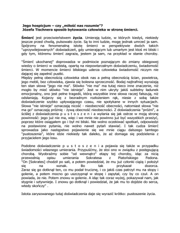 Jego hospicjum – czy „miłość nas rozumie”? Józefa Tischnera