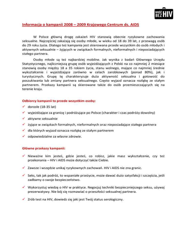 Informacja o kampanii 2008 – 2009 Krajowego Centrum ds. AIDS