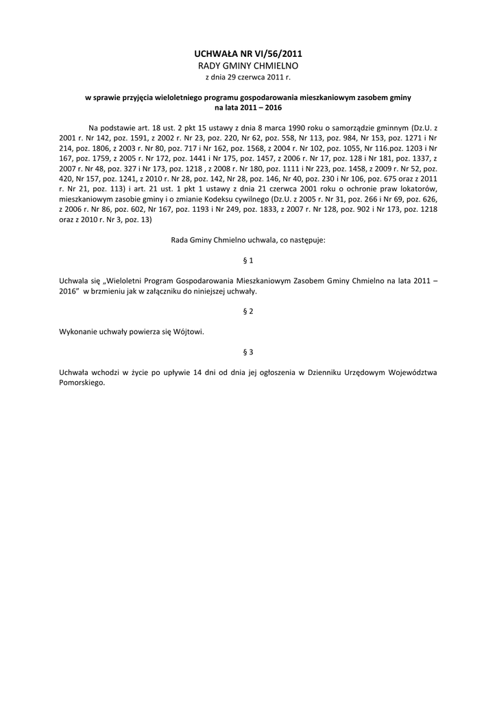 UCHWAŁA NR VI/56/2011 RADY GMINY CHMIELNO