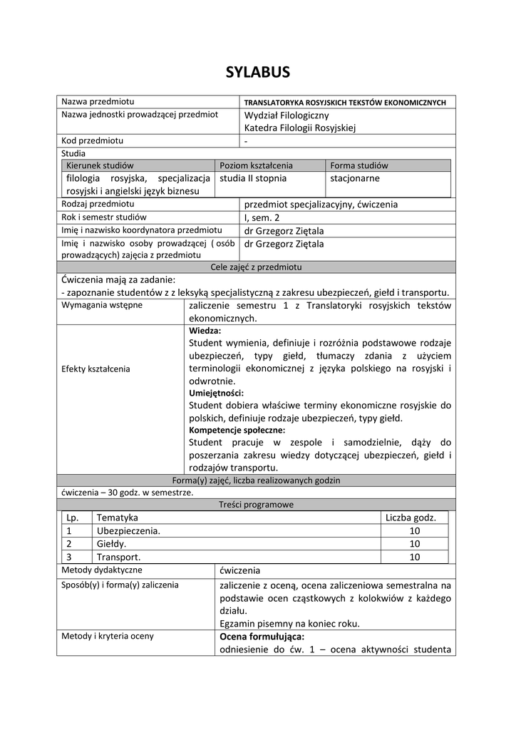 sylabus - Katedra Filologii Rosyjskiej