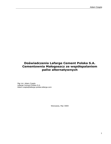 Doświadczenia Lafarge Cement Polska S.A. Cementownia