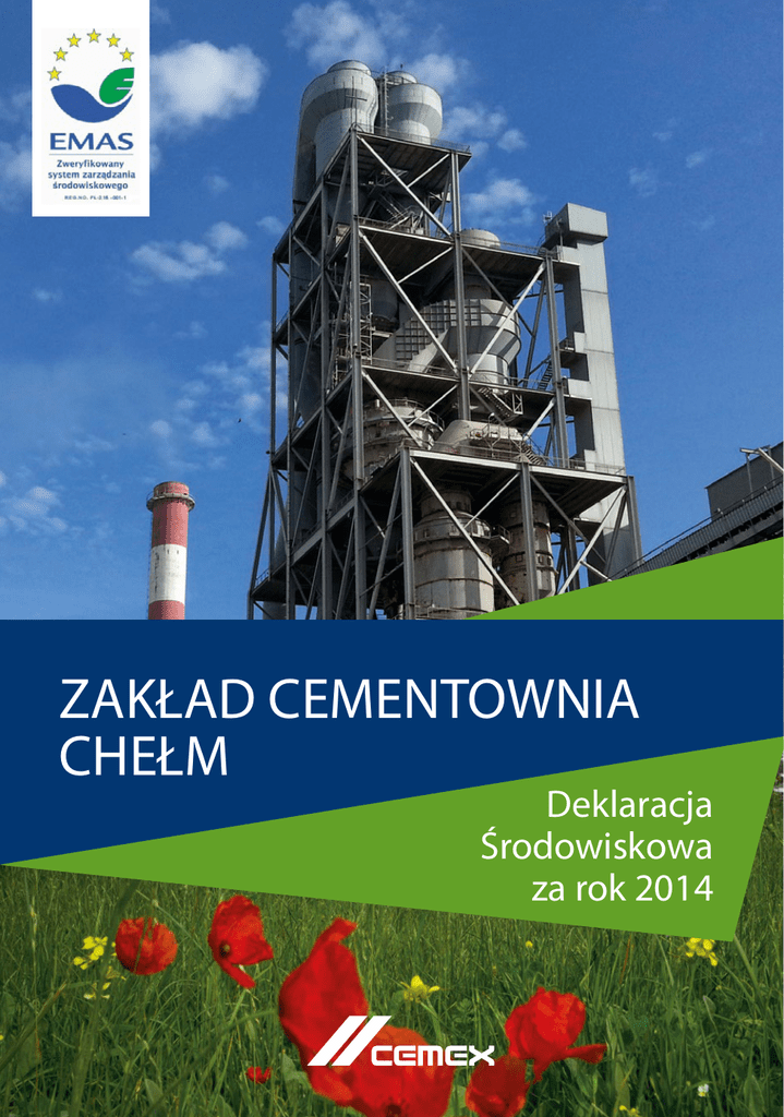 DEKLARACJA ŚRODOWISKOWA ZA ROK 2014 ZAKŁAD CEMENTOWNIA CHEŁM Deklaracja Środowiskowa za rok 2014 SŁOWO OD ZARZĄDU Zrównoważony rozwój, w tym ochrona środowiska naturalnego, uwzględnianie interesów lokalnych społeczności oraz dialog z interesariuszami, jest obok bezpieczeństwa i higieny pracy jednym z priorytetów CEMEX Polska. Promujemy te wartości wśród naszych pracowników, dostawców i klientów. Cele ochrony środowiska realizujemy na wielu płaszczyznach i w wielu wymiarach. W produkcji cementu są to przede wszystkim ograniczanie emisji do powietrza, w tym CO2 oraz bezpieczne dla środowiska i ludzi unieszkodliwianie odpadów. Jedno i drugie działanie realizujemy poprzez zastępowanie w naszej produkcji paliw kopalnych paliwami alternatywnymi. Dbałość o środowisko naturalne jest w rozumieniu CEMEX nie tylko spełnianiem obowiązujących przepisów i standardów, ale też naszym zobowiązaniem wobec lokalnej społeczności. Przejawem naszej odpowiedzialności są inwestycje ograniczające wpływ zakładu na otoczenie oraz liczne projekty związane z podnoszeniem świadomości ekologicznej wśród pracowników i włączanie lokalnych społeczności w kampanie edukacyjne i działania na rzecz ochrony przyrody. Nieustannie dążymy do osiągnięcia najwyższych standardów w zarządzaniu ochroną środowiska, zmniejszaniu naszego oddziaływania na otoczenie oraz racjonalnym gospodarowaniu zasobami naturalnymi. Przystąpienie do weryfikacji Systemu Eko-Zarządzania i Audytu EMAS w kolejnym roku z rzędu pokazuje, że dążenie do doskonałości jest procesem ciągłym i nadal pozostaje przed nami wiele wyzwań, którym będziemy sukcesywnie stawiać czoła. Marcelo Catala Prezes Zarządu CEMEX Polska Projekt „Wdrożenie i rejestracja CEMEX Polska Sp. z.o.o. – Zakład Cementownia Chełm w systemie EMAS” został dofinansowany ze środków Narodowego Funduszu Ochrony Środowiska i Gospodarki Wodnej Publikując kolejne już wydanie Deklaracji Środowiskowej dla Zakładu Cementownia Chełm, chcielibyśmy przedstawić Państwu, jak wiele inwestycji przeprowadziliśmy w ostatnim czasie w naszym zakładzie w celu zmniejszenia negatywnego oddziaływania Cementowni Chełm na środowisko. Corocznie wdrażamy kolejny proces lub rozwiązanie techniczne, które może świadczyć o naszym ponadstandardowym podejściu do tego zagadnienia. Przypomnę tylko, że nowe silosy klinkieru, oddane do użytku w 2013 roku, znacznie ograniczyły emisję niezorganizowaną pochodzącą z magazynowania i transportu tego surowca. Suszarnia paliw alternatywnych, również uruchomiona w roku 2013, to pionierski projekt w przemyśle cementowym dający szansę na stabilny proces współspalania paliw z odpadów, co pozwala nam z kolei zmniejszyć zużycie węgla kamiennego. Od marca 2014 roku na terenie Cementowni Chełm działa zakład produkcji paliw w ramach Spółki Ekopaliwa Chełm. Oczekujemy, że linia produkująca około 100 tys. ton paliw rocznie stanie się ważnym elementem gospodarki odpadowej w rejonie Chełma i województwie lubelskim. Pracujemy także intensywnie nad zmniejszeniem jednostkowej emisji CO2 na tonę klinkieru i odnosimy w tym obszarze duże sukcesy. Wspomniane wyżej inicjatywy oraz inne, szczegółowo opisane w publikacji, którą trzymają Państwo w ręku, mogą potwierdzić nasze wysiłki w zakresie ochrony środowiska. Tadeusz Radzięciak Członek Zarządu CEMEX Polska Dyrektor Pionu Produkcji i Technologii Cementu 3 DEKLARACJA ŚRODOWISKOWA ZA ROK 2014 Firma CEMEX jest meksykańskim koncernem wytwarzającym materiały budowlane w ponad 40 krajach na świecie. SPIS TREŚCI CEMEX w Polsce 47 5 O FIRMIE ZAKŁADÓW PRODUKCYJNYCH 6 OPIS ZAKŁADU 2 SCHEMAT ZAKŁADU CEMENTOWNIA CHEŁM 10 17 CEMENTOWNIE ZINTEGROWANY SYSTEM ZARZĄDZANIA 22 34 36 44 1 37 7 PRZEMIAŁOWNIA KLINKIERU WYTWÓRNI BETONU (stacjonarne i mobilne) KOPALNI KRUSZYW CEMEX zatrudnia obecnie blisko 1150 osób OPIS ODDZIAŁYWANIA NA ŚRODOWISKO BILANS ODDZIAŁYWANIA NA ŚRODOWISKO ZRÓWNOWAŻONY ROZWÓJ CELE I ZADANIA ŚRODOWISKOWE W 2014 roku w zakładach należących do CEMEX wyprodukowano łącznie około: 3 2,5 5 mln ton cementu CEMENTOWNIA CHEŁM mln m3 betonu towarowego mln ton kruszywa CEMENTOWNIA WYTWÓRNIA BETONU TOWAROWEGO PRZEMIAŁOWNIA KOPALNIA KRUSZYW TERMINAL 5 DEKLARACJA ŚRODOWISKOWA ZA ROK 2014 DEKLARACJA ŚRODOWISKOWA ZA ROK 2014 Położenie zakładu Cementownia Chełm położona jest na wschodnich obrzeżach Chełma w odległości około 3,5 km od centrum miasta, w województwie lubelskim. Geograficznie Cementownia Chełm położona jest na obszarze Pagórów Chełmskich stanowiących część Wyżyny Lubelskiej. Teren zakładu położony jest na wysokości 185-195 m n.p.m. i opada w kierunku północnym i północno-zachodnim od granicy zakładu w stronę doliny rzeki Uherka. Od północnej strony zakładu przebiega droga krajowa nr 12 Lublin-Dorohusk o wysokim natężeniu ruchu. OPIS ZAKŁADU 6 Pomimo iż zakład położony jest w sąsiedztwie licznych obszarów chronionych, zgodnie z posiadanymi wynikami badań i analiz Cementownia Chełm nie oddziałuje negatywnie na ich walory przyrodnicze. 7 DEKLARACJA ŚRODOWISKOWA ZA ROK 2014 Decyzje administracyjne Cementownia Chełm ma w pełni uregulowany stan formalno-prawny. Posiada wszystkie wymagane prawem decyzje administracyjne i dotrzymuje zawarte w nich wymogi. Swoistą licencją na prowadzenie działalności jest pozwolenie zintegrowane - Decyzja Wojewody Lubelskiego nr PZ 5/2004 (ze zmianami) - określające dopuszczalne rodzaje i wielkości emisji do powietrza, ilości odpadów dopuszczonych do wytworzenia, odzysku i unieszkodliwiania oraz dopuszczalną emisję hałasu z Zakładu Cementownia Chełm. W roku 2014 Cementownia Chełm po wejściu w życie Rozporządzenia Ministra Środowiska w sprawie standardów emisyjnych dla niektórych rodzajów instalacji, źródeł spalania paliw, oraz urządzeń spalania lub współspalania 
