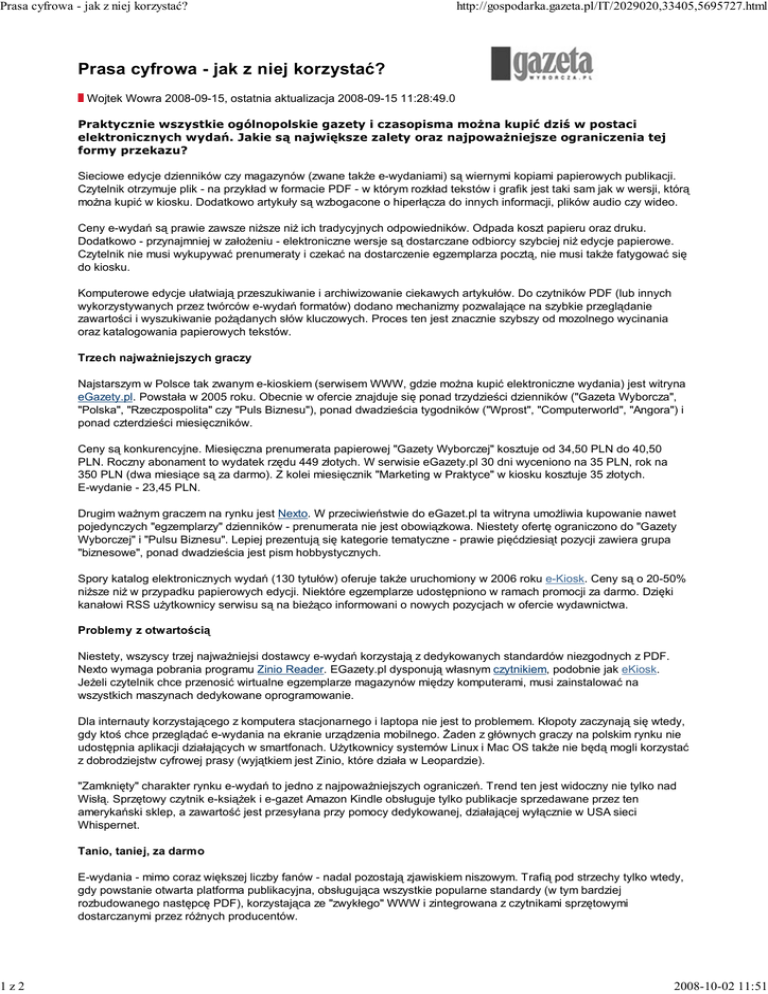 Komputerowe edycje ułatwiają przeszukiwanie i archiwizowanie ciekawych artykułów. Do czytników PDF (lub innych