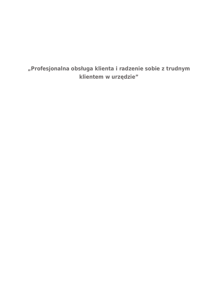 „Profesjonalna obsługa klienta i radzenie sobie z trudnym klientem w urzędzie” 16 listopada ukazała się moja trzecia książka pt. „Profesjonalna obsługa klienta i radzenie sobie z trudnym klientem w urzędzie”. To propozycja dla wszystkich, którzy sami bezpośrednio obsługują klientów lub taką obsługę nadzorują jako bezpośredni przełożeni lub szefowie instytucji. Twoja praca, polegająca na bezpośredniej obsłudze klienta, to ciężki kawałek chleba. I to wcale nie dlatego, że masz do czynienia z tzw. trudnymi klientami, choć i to stanowi o złożoności tego zajęcia. To ciężki kawałek chleba, bo jako pracownik „pierwszej linii frontu” podlegasz bezustannej ocenie swoich zachowań i postaw, które wpływają zarówno na stosunek klientów do Ciebie, jak i na wizerunek urzędu, którego jesteś pracownikiem. Twoje obowiązki wymagają od Ciebie wyjątkowych umiejętności, ale także wiele wyczucia, koncentracji i odpowiednich postaw. W swojej pracy jesteś bowiem tłumaczem, bo tłumaczysz zawiłości urzędniczego języka, jesteś przewodnikiem, bo prowadzisz przez pola minowe przepisów i gąszcz procedur, które także Tobie mogą „urwać nogę”, jesteś opiekunem, bo ludzie, którzy przychodzą do urzędów, bardzo często potrzebują pomocy. Przy okazji jesteś także saperem, który musi co jakiś czas rozbrajać bomby ludzkich emocji, jakie narastają podczas kontaktu niektórych klientów z urzędem. A jakby jeszcze tego było mało, jesteś także, a może przede wszystkim, pracownikiem swojej instytucji, która wymaga od Ciebie realizacji swoich zadań i osiągania swoich celów. Dodatkowo, coraz częściej słyszysz słowa „bądź profesjonalny i przyjazny dla klientów” lub „musisz obsługiwać zgodnie ze standardami obsługi klienta”. I tu często pojawia się dylemat. Co tak naprawdę oznacza bycie profesjonalnym i przyjaznym? Czym są te wspomniane standardy i na czym polegają? Problem polega na tym, że dotychczas na te pytania każdy mógł odpowiedzieć tak, jak mu się podoba. Zresztą nie znam nikogo, kto odpowiedziałby przecząco na pytanie, czy jego postępowanie cechuje profesjonalizm. A przecież żeby stwierdzić, że rzeczywiście tak jest, potrzebujemy jakiegoś obiektywnego i akceptowanego przez większość punktu odniesienia. Nie oszukujmy się — nie każdy urzędnik jest przecież profesjonalistą i dobrze wykonuje swoje zadania w zakresie obsługi klientów. Pytanie brzmi, czy nie robi tego, bo nie widzi takiej potrzeby, czy dlatego, że nie wie, jak powinien się zachowywać i jakie postawy wyrażać swoim zachowaniem. Ta książka powstała, żeby pomóc tym, którzy chcą. Być może nie wiedzą, jak to robić, ale chcą. I także dla tych, którzy chcą sprawdzić, czy to, co robią, jest obecnie akceptowalnym standardem. Książka ma pomóc w zrozumieniu, czego się dziś oczekuje od pracowników zajmujących się bezpośrednią obsługą w urzędzie. Znajdziesz w niej szereg narzędzi i proponowanych rozwiązań, które pozwolą Ci zwiększyć osobistą skuteczność obsługi klienta, w tym także tzw. klienta trudnego, a dzięki temu zyskasz także poczucie satysfakcji z wykonywania tej pracy, którą osobiście uważam za jedną z najtrudniejszych w każdym urzędzie. Książka jest próbą nakreślenia standardów obsługi klienta zarówno w sferze działań każdego z pracowników indywidualnie, jak i w sferze działania instytucji jako całości. Staram się w niej zrobić to poprzez wskazanie przykładowych, pożądanych rozwiązań organizacyjnych służących obsłudze klienta. Stąd w drugiej grupie jej adresatów znajdują się wszyscy bezpośredni przełożeni, którzy organizują lub też nadzorują sferę obsługi klienta przez podległych im pracowników, a także szefowie instytucji odpowiadający za jakość obsługi w swoim urzędzie. [ZOBACZ RECENZJE #1][ZOBACZ RECENZJE #2] [KUP KSIĄŻKĘ U WYDAWCY] Opinie o książce „Radosław Hancewicz, jak zawsze – w sposób przystępny i ciekawy – zachęca urzędników do tego, aby lepiej pracowali. Jak podkreśla – obsługa klienta to nie tylko sprawa Pani (Pana) z okienka, ale pracowników urzędu na wszystkich szczeblach i stanowiskach. Dla mnie – urzędnika na co dzień – książka jest wspaniałą inspiracją, żeby się bardziej starać, doskonalić. Nie zawiera ona skomplikowanych i trudnych do użycia narzędzi – raczej przypomina o rzeczach najważniejszych, tworzących dzisiejszy standard obsługi, których przypominanie, raz na jakiś czas, jest konieczne, żeby nie popaść w rutynę. Radosław Hancewicz przedstawia w niej stereotypowego „trudnego klienta”, który wzbudza uśmiech, i podpowiada jak z nim postępować, ale nie oszczędza też urzędników, bezlitośnie podając przykłady ich najczęstszych błędów. Autor wielokrotnie porusza ciekawy wątek relacji między urzędnikiem a klientem, zwracając uwagę na niestosowność wywyższania się urzędników, ale także nie zachęca do zbytniej uległości, w imię zasady „klient nasz Pan”. Książkę odradzam teoretykom, a szczerze polecam urzędnikom.” – Pan Wojciech Zieliński, Zastępca Dyrektora Departamentu Służby Cywilnej w Kancelarii Prezesa Rady Ministrów