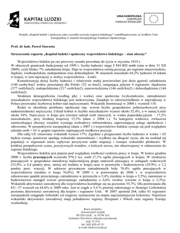 Raport Kapitał ludzki i społeczny województwa łódzkiego