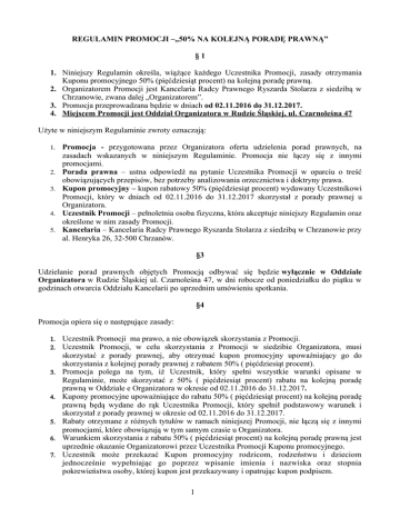 REGULAMIN PROMOCJI –„-50% ZA KOLEJNĄ PORADĘ PRAWNĄ”