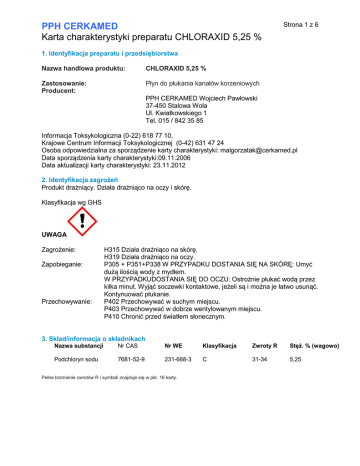 PPH CERKAMED Karta charakterystyki preparatu CHLORAXID 5,25