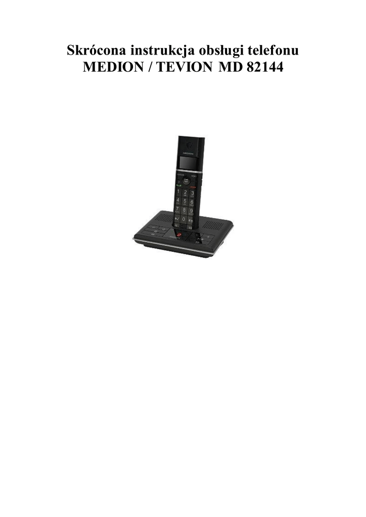 Skrócona instrukcja obsługi telefonu MEDION / TEVION MD 82144