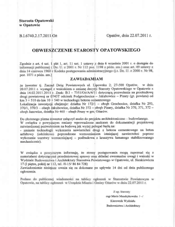 OBWIESZCZENIE STAROSTYOPATOWSKIEGO