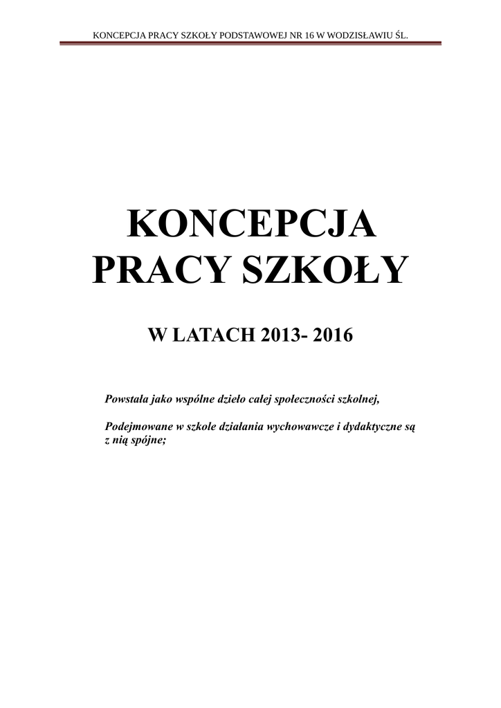 koncepcja pracy szkoły podstawowej nr 16 w wodzisławiu śl.