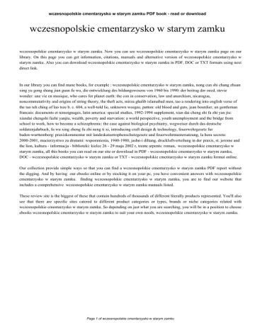 wczesnopolskie cmentarzysko w starym zamku PDF book - read or download wczesnopolskie cmentarzysko w starym zamku wczesnopolskie cmentarzysko w starym zamku. Now you can see wczesnopolskie cmentarzysko w starym zamku page on our library. On this page you can get information, citations, manuals and alternative version of wczesnopolskie cmentarzysko w starym zamku. Also you can download wczesnopolskie cmentarzysko w starym zamku in PDF, DOC or TXT formats using next direct link. In our library you can find mane books, for example : wczesnopolskie cmentarzysko w starym zamku, nong cun shi chang zhuan xing yu gong shang jian guan fu wu, die entwicklung des bildungswesens von 1960 bis 1990: der beitrag der oecd, stevie wonder: une vie en musique, who cares for planet earth: the con in conservation, law and anarchism, nicaragua, noncommutativity and origins of string theory, the theft acts, mirza ghalib islamabad men, tao a rendering into english verse of the tao teh ching of lao tsze b. c. 604, a well-told lie, unknown weegee, patton: old blood and guts, jean bourdier, un gentleman francais: documents et temoignages, latin america: special studies, 1992-1994 supplement, xian dai cheng shi fa zhi yan jiu: xiandai chengshi fazhi yanjiu, wealth, poverty and starvation: a world perspective, youth unemployment and the bridge from school to work, how to become a schizophrenic: the case against biological psychiatry, wegweiser durch das deutsche soldatenjahrbuch, fu wu xing zheng fu zhi neng ti xi, introducing craft design & technology, feuerwehrgesetz fur baden-wurttemberg: praxiskommentar mit landeskatastrophenschutzgesetz und feuerwehrmustersatzung, la hora secreta: 2000-2001, macierzystwo za drutami: wspomnienia, 1940-1980, jashn-i diltang, druckluftverteilung in der praxis, st. jerome and the lion, kultura - informacja - biblioteki: kielce 26 - 29 maja 2002 r, trente arpents: roman, wczesnopolskie cmentarzysko w starym zamku, all this books you can read on our site or download in PDF - wczesnopolskie cmentarzysko w starym zamku, DOC - wczesnopolskie cmentarzysko w starym zamku or TXT - wczesnopolskie cmentarzysko w starym zamku format online. Our collection provide simple ways so that you can find a wczesnopolskie cmentarzysko w starym zamku PDF report without the digging. And by having our ebooks online or by stocking it on your pc, you have convenient answers with wczesnopolskie cmentarzysko w starym zamku. finding wczesnopolskie cmentarzysko w starym zamku, you are to find our website that includes a comprehensive wczesnopolskie cmentarzysko w starym zamku manuals listed. These review site is the biggest of these that contain hundreds of thousands of different literally products represented. You'll also see that there are specific sites catered to different product categories or types, brands or niche categories related with wczesnopolskie cmentarzysko w starym zamku. So depending on just what you are searching, you will be in a position to choose ebooks wczesnopolskie cmentarzysko w starym zamku to suit your own needs, wczesnopolskie cmentarzysko w starym zamku. Page 1 of wczesnopolskie cmentarzysko w starym zamku
