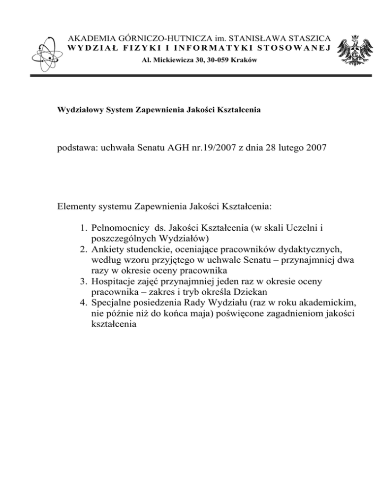 podstawa: uchwała Senatu AGH nr.19/2007 z dnia 28 lutego 2007