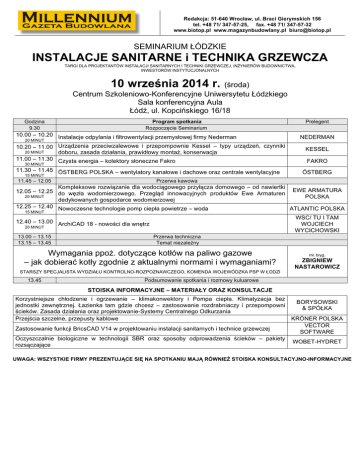 INSTALACJE SANITARNE i TECHNIKA GRZEWCZA 10 września