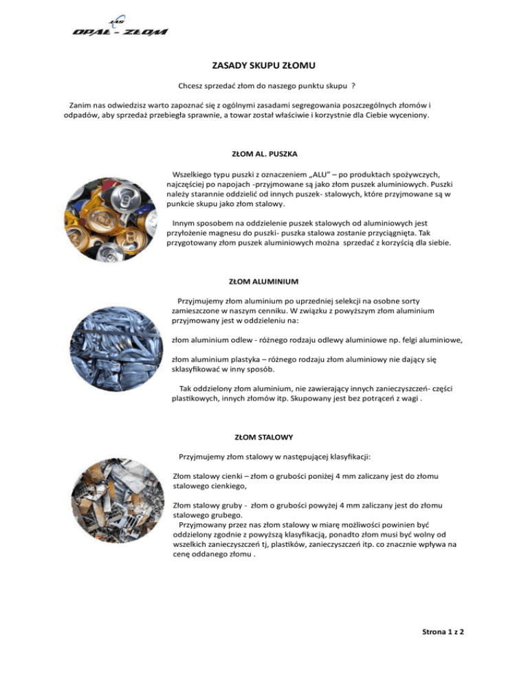 ZASADY SKUPU ZŁOMU