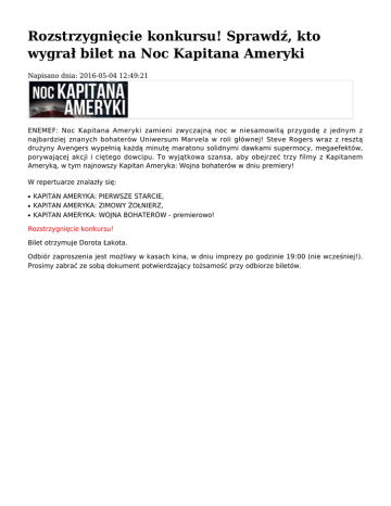 Sprawdź, kto wygrał bilet na Noc Kapitana Ameryki