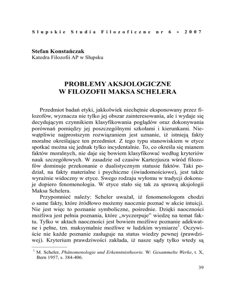 PROBLEMY AKSJOLOGICZNE W FILOZOFII MAKSA SCHELERA