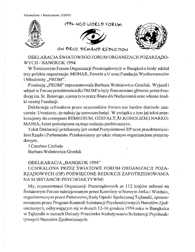 organizowanym przez Pa6stwowąRadę Opieki Społecznej Tajlandii, sponsorowanym przez Program Kontroli Substancji Psychoaktywnych Narodów Zjednoczonych, odbywającym się w dniach 12-16 grudnia 1994 roku w Bangkoku