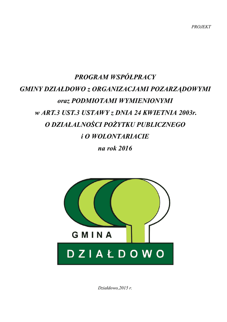 PROGRAM WSPÓŁPRACY GMINY DZIAŁDOWO z