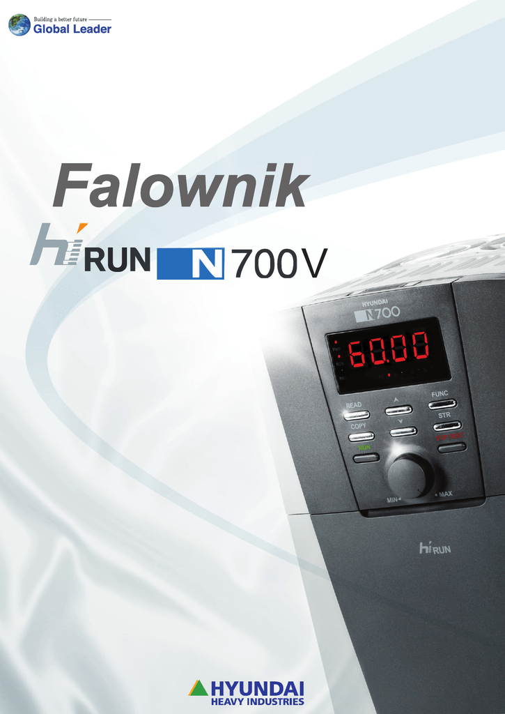 Falownik V Dane techniczne: seria N700 V LF HF Model 055 075 110 150 185 220 300 370 450 550 055 075 110 150 185 220 300 370 450 550 750 900 1100 1320 Maksymalna moc silnika (kW) 5,5 7,5 11 15 18,5 22 30 34 45 55 5,5 7,5 11 15 18,5 22 30 37 45 55 75 90 110 132 Znamionowy pr¹d wyjœciowy (A) 24 32 46 64 76 95 121 145 182 220 12 16 23 32 38 48 58 75 90 110 149 176 217 260 Znamionowe napiêcie zasilania 3 ~ 200 .. .240V ±10% 50/60 Hz 3 ~ 380 .. .480V ±10% 50/60 Hz Znamionowe napiêcie wyjœciowe 3 ~200 ... 240V (proporcjonalne do napiêcia wejœciowego) 3 ~380 ... 460V (proporcjonalne do napiêcia wejœciowego) Filtr przeciwzak³óceniowy opcjonalnie Czêstotliwoœæ wyjœciowa 0.1 ... 400Hz Dok³adnoœæ regulacji czêstotliwoœci wyjœciowej nastawa analogowa: ± 0,2% maksymalnej czêstotliwoœci, nastawa cyfrowa: ± 0,01% maksymalnej czêstotliwoœci nastawa analogowa: maks. czêstotliwoœæ / 4000 nastawa cyfrowa: 0,01Hz Rozdzielczoœæ czêstotliwoœci sterowanie U/f charakterystyka sta³omomentowa, redukowana lub nastawa U/f, ponadto sterowanie wektorowe ze sprzê¿eniem zwrotnym (opcja) Charakterystyka sterowania U/f Dopuszczalne przeci¹¿enie pr¹dowe 150% przez 60s 0,01 - 3600 s (liniowe lub po wybranej krzywej) Czas przyspieszania/zwalniania 200% przy 0,5Hz Moment rozruchowy Hamowanie pr¹dnicowe obwód BRD minimalna rezystancja rezystora Hamowanie dynamiczne DC Wejœcia obwód BRD jest wbudowany (rezystor hamuj¹cy jest opcj¹) 17 3,5 6 2,4 Wyjœcia 30 20 12 8 6 poprzez przyciski Run / Stop (kierunek obrotów zale¿ny od nastawy) poprzez sygna³y listwy zaciskowej wejœciowej FW lub RV (zestyk NZ lub NO, dostêpna równie¿ funkcja impulsowego za³/wy³ rozkazu ruchu) poprzez port 485 zacisk FW i 8 programowalnych zacisków: RV (bieg w lewo), CF1 ~CF4(wielopoziomowa nastawa prêdkoœci - kombinacja zestyków), JG(bieg próbny),DB(hamowanie DC), SET2 (nastawy dla drugiego silnika) 2CH(drugi zestaw czasów przyspieszania / zwalniania), 3CH(trzeci zestaw czasów przyspieszania/ zwalniania), FRS(wybieg silnika), EXT(zewnêtrzna blokada), USP(zabezpieczenie przed samoczynnym uruchomieniem), SFT(blokada nastaw), AT(wybór sygna³u analogowego), RESET(kasowanie blokady falownika), STA (start impulsowy), STP(stop impulsowy), F/R(bieg w prawo/lewo), PID(blokada PID), PIDC(resetowanie cz³onu ca³kuj¹cego regulatora), UP(motopotencjometr - góra), DOWN (motopotencjometr - dó³), UDC(zdalne czyszczenie danych), OPE(wymuszanie rozkazu ruchu zadawania czêstotliwoœci z panela falownika), TL(funkcja ograniczenia momentu), TRQ1(ograniczenie momentu dla 4-ech kwart, Bit 1(najmniej znacz¹cy bit)), TRQ2(ograniczenie momentu dla 4-ech kwart, Bit 2(najbardziej znacz¹cy bit)), BOK(potwierdzenie odpuszczenia hamulca), ORT(pozycja pocz¹tkowa dla trybu ASR), LAC(anulowania liniowego przyspieszania/zwalmniania), PCLR(kasowanie odchy³ki pozycji), STAT(rozkaz zliczania impulsów w trybie odwzorowania prêdkoœci, XT1, XT2, XT3(wielopoziomowe czasy przyspieszania/zwalniania 1~3) 1 zacisk (charakterystyka termistora PTC) 4 wyjœcia typu “otwarty kolektor”, 2 wyjœcia przekaŸnikowe prze³¹czne: RUN(sygnalizacja ruchu), FA1(sygna³ osi¹gniêcia poziomu czêstotliwoœci - typ 1 - sta³a czêstotliwoœæ), FA2 (sygna³ osi¹gniêcia poziomu czêstotliwoœci - typ 2 - przekroczenie czêstotliwoœci), OL(sygnalizacja przeci¹¿enia pr¹dem (1)), OD(sygnalizacja przekroczenia sygna³u uchybu), ALM(sygna³ alarmu), FA3(sygna³ osi¹gniêcia poziomu czêstotliwoœci - typ 3 - równa czêstotliwoœci), OTQ(sygnalizacja przeci¹¿enia momentem), IP(zanik napiêcia zasilania), UV (stanpodnapiêciowy), TRQ(sygnalizacja ograniczenia momentu napêdowego), RNT(sygnalizacja przekroczenia czasu pracy silnika), ONT(sygnalizacja przekroczenia czasu zasilania falownika), THM(sygna³ ostrze¿enia termicznego), BRK(odpuszczenie hamulca), BER(za³¹czenie dodatkowego hamulca lub sygna³ alarmu), ZS(detekcja prêdkoœci zerowej), DSE(przekroczenie odchy³ki prêdkoœci), POK(osi¹gniêcie zadanej pozycji), FA4(sygna³ osi¹gniêcia poziomu czêstotliwoœci - typ 4 - przekroczenie czêstotliwoœci(2)), FA5(sygna³ osi¹gniêcia poziomu czêstotliwoœci - typ 5 - równa czêstotliwoœci (2)), OL2(sygnalizacja przeci¹¿enia pr¹dem (2)), IPALM(sygna³ alrmowy zaniku napiêcia zasilania), UVALM (sygna³ alarmowy stanu podnapiêciowego) wyjœcie analogowe napiêciowe, wyjœcie analogowe pr¹dowe, napiêciowe z mo¿liwoœci¹ cyfrowego monitorowania czêstotliwoœci czêstotliwoœæ wyjœciowa, pr¹d wyjœciowy, przeskalowana czêstotliwoœæ wyjœciowa, historia b³êdów, stan zacisków wej./wyj., moc wejœciowa, napiêcie wyjœciowe, moment napêdowy i inne wielkoœci wielkoœci monitorowane wolna nastawa charakterystyki U/f, górne/dolne ograniczenie czêstotliwoœci, czêstotliwoœæi zabronione, krzywe przyspieszania/zwalniania, rêczne podbicie momentu, kalibracja sygna³u analogowego, czêstotliwoœæ pocz¹tkowa, czêstotliwoœæ kluczowania tranzystorów mocy, zabezpieczenie termiczne, dopasowanie sygna³u analogowego wejœciowego, wybór wejœcia analogowego, ponowny rozruch po zaniku zasilania, redukcja napiêcia pocz¹tkowego, zabezpieczenie przeci¹¿eniowe, sygna³y wyjœciowe, powrót do nastaw fabrycznych, automatyczne zwalnianie przy zaniku napiecia zasilania, funkcja AVR, autostrojenie(off-line/on-line) i inne funkcje Inne funkcje Funkcje zabezpieczeñ zabezpieczenie nadpr¹dowe, nadnapiêciowe, podnapiêciowe, przeci¹¿eniowe, b³¹d przegrzania falownika, b³¹d doziemienia, b³¹d zaniku zasilania, zabezpieczenie przed samoczynnym uruchomieniem, b³ad zaniku fazy, b³¹d przeci¹¿enia rezystora hamuj¹cego, b³¹d zewnêtrzny, b³ad komunikacji i inne Spe³nione standardy Dyrektywa niskonapiêciowa(Low voltage directive 72/73/EEC), Dyrektywa EMC(EMC Directive 2004/108/EC), CE, UL, cUL -10 ... +50°C temperatura otoczenia / 20~ 90% wilgotnoœæ otoczenia (bez kondensacji pary) temperatura / wilgot