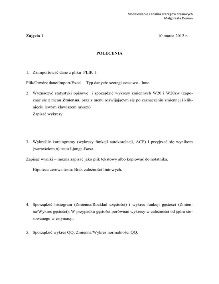 Zajęcia 1 10 marca 2012 r. POLECENIA 1. Zaimportować dane z