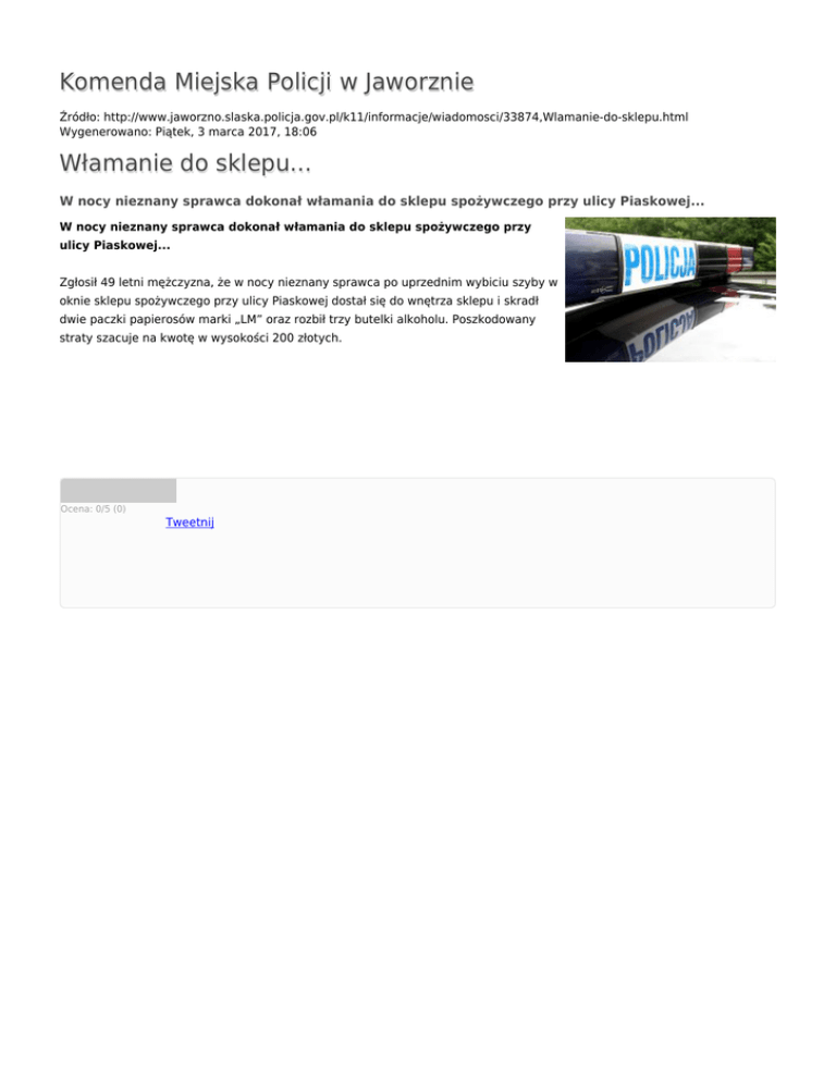 Komenda Miejska Policji w Jaworznie Włamanie do sklepu