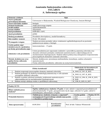 Anatomia funkcjonalna człowieka - Wydział Biologiczno