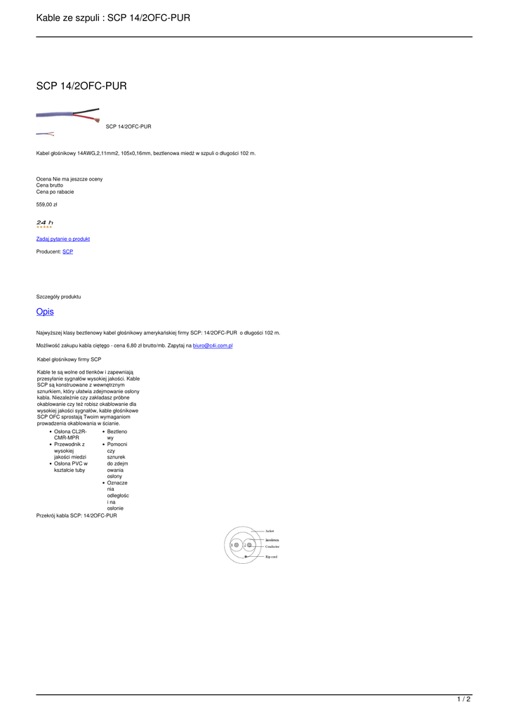 Kable ze szpuli : SCP 14/2OFC-PUR