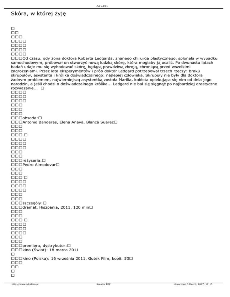 narodzin, a jeśli chodzi o doświadczalnego królika... Ledgard nie bał się sięgnąć po najbardziej drastyczne