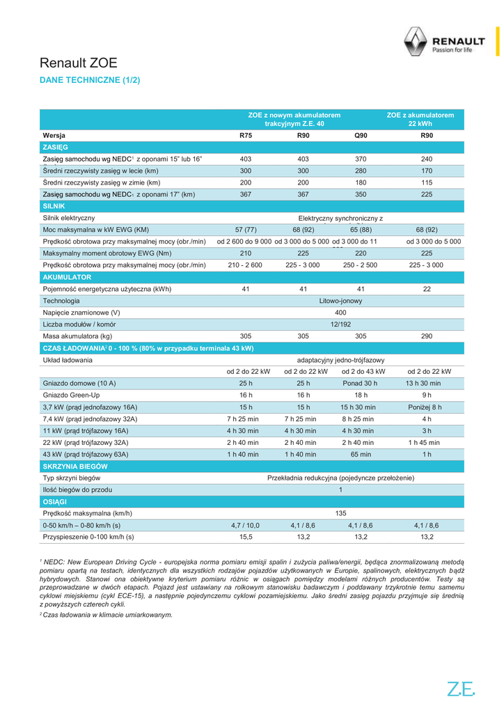 cyklowi miejskiemu (cykl ECE-15), a następnie pojedynczemu cyklowi pozamiejskiemu. Jako średni zasięg pojazdu przyjmuje się średnią