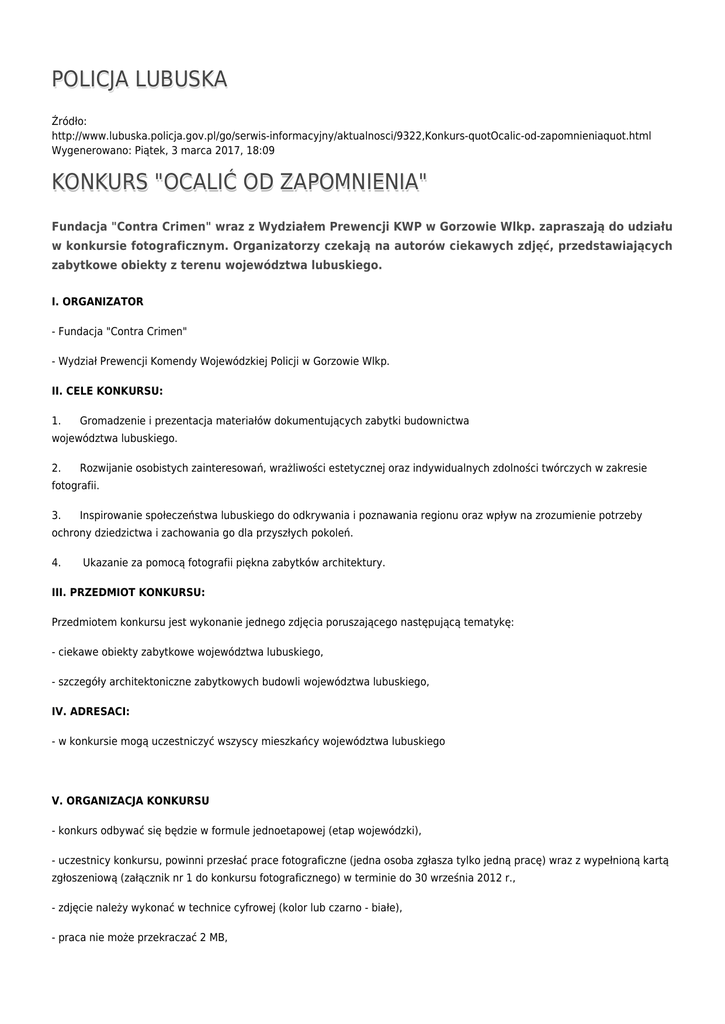 POLICJA LUBUSKA KONKURS "OCALIĆ OD ZAPOMNIENIA"