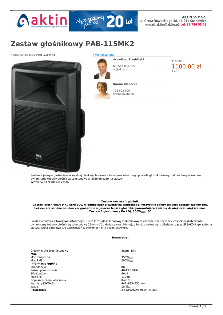 Zestaw głośnikowy PAB-115MK2