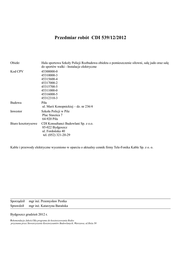przedmiar - Szkoły Policji w Pile