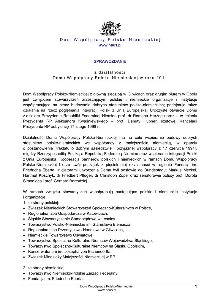 Domu W spółpracy Polsko-Nie mieckie j w roku 2011