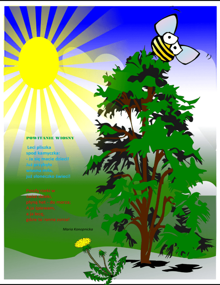 POWITANIE WIOSNY Leci pliszka spod kamyczka: - Ja się macie dzieci! Już przybyła wiosna miła, już słoneczko świeci! Poszły rzeki w świat daleki, płyną het - do morza; A ja śpiewam, a ja lecę, gdzie ta ranna zorza! Maria Konopnicka W naszej szkole uroczyste powitanie wiosny nastąpiło 20.03.2015. roku. Dzieci przygotowały z tej okazji marzanny, które na boisku szkolnym zostały spalone. Tym samym pożegnaliśmy zimę, która, choć nietypowa, dała się nam we znaki. W myśl odśpiewanych przez dzieci piosenek i wyrecytowanych wierszy zaprosiliśmy do nas wiosnę ciepłą i słoneczną.