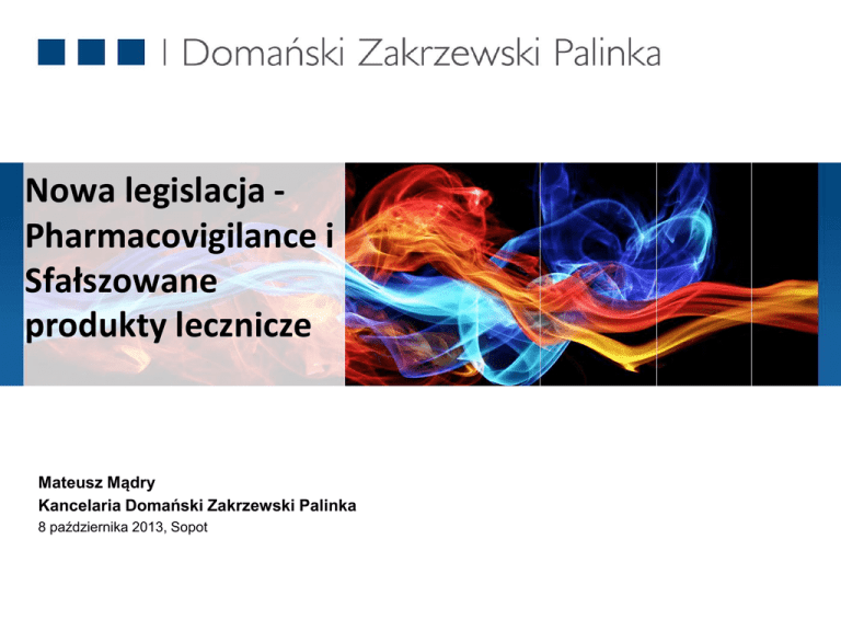 Nowa legislacja Pharmacovigilance i Sfałszowane produkty lecznicze Mateusz Mądry Kancelaria Domański Zakrzewski Palinka 8 października 2013, Sopot Pharmacovigilance Legislacja pharmacovigilance Dyrektywa 2010/84/EU oraz Rozporządzenie 2010/1235/EU weszły w życie 21 lipca 2012 roku . Implementacja w Polsce – Sejm uchwalił ustawę 27 września 2013 r. Dyrektywa – najważniejsze zmiany Pojęcie działania niepożądanego Uprawnienia pacjentów do bezpośredniego zgłaszania działań niepożądanych Warunki w pozwoleniu na dopuszczenie do obrotu PASS i PAES Nowe obowiązki MAH Eudravigilance PRAC Wspólna ocena PSUR Urgent Union Procedure Działanie niepożądane Systemem nadzoru nad bezpieczeństwem stosowania produktów leczniczych – jest system wykorzystywany przez podmiot odpowiedzialny oraz właściwe organy do wypełniania zadań i obowiązków wymienionych w rozdziale 2(1) oraz mający na celu monitorowanie bezpieczeństwa dopuszczonych do obrotu produktów leczniczych, a także wykrywanie wszelkich zmian w ich stosunku korzyści do ryzyka. Definicja – każde niekorzystne i niezamierzone działanie produktu leczniczego. Zgłaszanie pojedynczych przypadków działań niepożądanych należy kierować do Prezesa URPL lub MAH. Uprawnieni do zgłaszania działań są osoby wykonujące zawód medyczny, pacjenci, ich przedstawiciele ustawowi lub opiekunowie faktyczni. MAH i Prezes URPL przekazują do EMA informacje o pojedynczych przypadkach ciężkich działań niepożądanych w ciągu 15 dni, pozostałych w ciągu 90 dni. Więcej obowiązków MAH – art. 36g wskazanie osoby, do obowiązków której należeć będzie nadzór nad bezpieczeństwem stosowania produktów leczniczych; wdrożenie i utrzymywanie systemu gwarantującego, że informacje o zgłoszeniach pojedynczych przypadków działań niepożądanych, które są kierowane do tego podmiotu, będą zbierane i zestawiane w jednym miejscu; prowadzenia rejestru zgłoszeń pojedynczych przypadków działań niepożądanych produktów leczniczych; dysponowanie pełnym opisem systemu nadzoru nad bezpieczeństwem stosowania produktu leczniczego, który jest stosowany przez podmiot odpowiedzialny w odniesieniu do jednego lub większej liczby produktów leczniczych i został wdrożony przez podmiot odpowiedzialny po wydaniu pozwolenia oraz odnosi się do danego produktu leczniczego; Nowe obowiązki Prezesa URPL analiza i opracowywanie zgłoszeń, w tym ocena przyczynowo skutkowa wszystkich zgłoszeń pojedynczych przypadków działań niepożądanych; gromadzenie i analiza dokumentów stosowania produktów leczniczych, wydawanie komunikatów dotyczących bezpieczeństwa stosowania produktu leczniczego, przeznaczonych i skierowanych bezpośrednio do osób wykonujących zawód medyczny lub ogółu społeczeństwa; uzgadnianie treści komunikatów dotyczących bezpieczeństwa produktu leczniczego, przeznaczonych i skierowanych bezpośrednio do osób wykonujących zawód medyczny lub ogółu społeczeństwa, wydawanych i upowszechnianych przez podmiot odpowiedzialny; udzielanie informacji o produktach leczniczych, w tym o działaniach niepożądanych produktów leczniczych; podejmowanie działań zwiększających bezpieczeństwo stosowania produktów leczniczych, w tym inicjowanie zmian w Charakterystykach Produktów Leczniczych; dotyczących bezpieczeństwa Wniosek i ChPL • • Wniosek plan zarządzania ryzykiem streszczenie opisu systemu nadzoru nad bezpieczeństwem stosowania produktu ChPL informację dla osób wykonujących zawód medyczny o obowiązku albo uprawnieniu zgłaszania pojedynczych przypadków działań niepożądanych danego produktu leczniczego ze względu na konieczność nieprzerwanego monitorowania jego stosowania; w przypadku produktów leczniczych podlegających dodatkowemu monitorowaniu: a) wskazanie odpowiedniego czarnego symbolu, wybranego zgodnie z art. 23 rozporządzenia nr 726/2004/WE, b) sformułowanie o następującej treści: „Ten produkt leczniczy podlega dodatkowemu monitorowaniu” uzupełnione o dodatkowe wyjaśnienia. Raport oceniający Przed wydaniem pozwolenia Prezes URPL opracowuje raport oceniający zawierający opinię naukową o produkcie leczniczym wraz z uzasadnieniem oraz streszczeniem raportu oceniającego zrozumiałym dla odbiorcy, zawierającym w szczególności informację odnoszącą się do warunków stosowania tego produktu. Po wydaniu pozwolenia raport oceniający wraz z uzasadnieniem oraz streszczeniem jest publikowany na stronie internetowej URPL, oraz na stronie podmiotowej Biuletynu Informacji Publicznej URPL. Pozwolenie warunkowe Możliwość wydania pozwolenia warunkowego zależnego od: 1) podjęcia działań, w ramach systemu zarządzania ryzykiem użycia produktu leczniczego, w celu zapewnienia bezpiecznego stosowania tego produktu leczniczego, lub 2) przeprowadzenia badań dotyczących bezpieczeństwa po wydaniu pozwolenia, lub 3) wykonywania obowiązków w zakresie rejestrowania lub zgłaszania działań niepożądanych w odniesieniu do tego produktu leczniczego, a w zakresie danych zawartych w tych zgłoszeniach oraz częstotliwości ich przekazywania w sposób inny niż przewidziano w rozdziale 2a, lub 4) wykorzystywania odpowiedniego systemu nadzoru nad bezpieczeństwem stosowania produktów leczniczych, lub 5) przeprowadzenia badań dotyczących skuteczności po wydaniu pozwolenia, w przypadku gdy pojawiły się wątpliwości odnoszące się do niektórych aspektów skuteczności tego produktu leczniczego, lub 6) dostarczania informacji dotyczących bezpieczeństwa i skuteczności tego produktu leczniczego wynikających z postępu naukowo- technicznego i z poszerzania wiedzy na temat tego produktu leczniczego lub substancji czynnych wchodzących w skład tego produktu. Zmiany dotyczące pozwolenia na dopuszczenie do obrotu Pozwolenie określa częstotliwość, z jaką od dnia wydania pozwolenia składane będą raporty okresowe o bezpieczeństwie stosowani