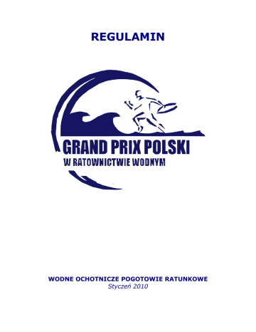 REGULAMIN WODNE OCHOTNICZE POGOTOWIE RATUNKOWE Styczeń 2010 I. ORGANIZACJA I PRZEPROWADZENIE ZAWODÓW Grand Prix Polski w ratownictwie wodnym (GP) organizuje Komisja Sportu Wodnego Ochotniczego Pogotowia Ratunkowego (KS WOPR) przy współpracy jednostek wojewódzkich oraz terenowych Wodnego Ochotniczego Pogotowia Ratunkowego (WOPR). II. ZDOLNOŚĆ DO UCZESTNICTWA W ZAWODACH 1. Zgłoszenia do udziału w GP mogą być dokonywane indywidualnie oraz drużynowo przez jednostki WOPR. 2. W GP prawo startu mają zawodnicy posiadający ważną legitymację członka WOPR na dany rok oraz aktualne badania lekarskie. 3. W GP mogą brać udział drużyny krajowe będące w strukturach WOPR oraz zagraniczne. 4. Zgłoszenie zawodnika dokonuje się poprzez przesłanie właściwego formularza na wskazany w komunikacie adres. 5. Zgłoszenie do zawodów jest równoznaczne z oświadczeniem, iż zawodnik nie ma przeciwwskazań lekarskich do udziału w zawodach z zakresu ratownictwa wodnego i startuje na własną odpowiedzialność oraz, że zapoznał się i akceptuje regulamin GP. 6. Każdy zawodnik w danym roku kalendarzowym może reprezentować tylko jedną drużynę. W przypadku zgłoszenia się jako zawodnik innej drużyny w tym samym roku zgłoszenie będzie przyjęte ale zawodnik zostanie zarejestrowany pod nazwą, która była podana jako pierwsza w danym roku. III. ZAWODNICY I ZAWODNICZKI 1. Słowa zawarte w niniejszymi regulaminie oznaczające płeć męską (jego, on, zawodnik itp.) obejmują również kobiety. 2. Udział w GP mogą brać zawodnicy, którzy mają nie mniej niż 12 lat ukończone w roku rozgrywania zawodów. 3. Osoby niepełnoletnie muszą posiadać pisemną zgodę prawnego opiekuna. 4. Podczas GP prowadzona będzie klasyfikacja w trzech kategoriach wiekowych: a) W kategorii młodzików – od 12 do 13 lat (ukończonych w roku rozgrywania zawodów) b) w kategorii juniorów – od 14 do 19 lat (ukończonych w roku rozgrywania zawodów), c) w kategorii open – bez ograniczeń wiekowych (jednak nie mniej niż 14 lat). 5. Zgodnie z zaleceniami ILSE, GP ma być wolne od dopingu z możliwością przeprowadzania testów antydopingowych, przez upoważnione podmioty, podczas wszystkich konkurencji, a także w dowolnym czasie przed i po zawodach. IV. STRÓJ DO ZAWODÓW 1. Wszyscy zawodnicy muszą nosić stroje lub kostiumy zgodnie z obowiązującymi standardami ILS. 2. Zawodnik zostanie wykluczony z zawodów, jeśli nie będzie stosownie ubrany. 3. Każdy zawodnik powinien być ubrany stosownie podczas ceremonii otwarcia i wręczania nagród, pod rygorem kary upomnienia lub dyskwalifikacji. 4. Kierownicy drużyn, trenerzy i pomocnicy powinni brać udział w ceremoniach i nosić ubrania identyfikujące ich z drużyną. 5. Na życzenie organizatorów zawodnicy powinni nosić strój wyznaczony i dostarczony przez Komitet Organizacyjny w szczególności podczas: a) dekoracji, b) ceremonii wręczania nagród, c) udzielania wywiadów telewizyjnych. 6. Każdy z zawodników ma obowiązek udzielania wywiadów telewizyjnych, radiowych i prasowych dotyczących GP. V. NAGRODY I TROFEA - Poszczególnych edycji GP 1. Trzech najlepszych zawodników w każdej konkurencji GP otrzymuje medale i dyplomy według zajętych miejsc z podziałem na kobiety i mężczyzn oraz juniorów i open. Za konkurencje sztafetowe medale wręczane są pierwszym trzem składom sztafetowym tylko w kategorii open. 2. Trzech najlepszych zawodników w klasyfikacji generalnej w kategorii open każdej edycji GP otrzymuje pamiątkowe puchary lub statuetki wg sumy zdobytych punktów wielobojowych w dwóch najlepszych konkurencjach z podziałem na kobiety i mężczyzn. - Edycji finałowej GP 3. Trzech najlepszych zawodników w każdej konkurencji Finału GP otrzyma medale i dyplomy według zajętych miejsc z podziałem na kobiety i mężczyzn oraz Juniorów i open. Za konkurencje sztafetowe medale wręczane są pierwszym trzem składom sztafetowym tylko w kategorii open. 4. Pięciu najlepszych zawodników w klasyfikacji końcowej każdej konkurencji (podsumowującej cały rok) otrzyma pamiątkowe puchary lub statuetki według sumy zdobytych przez zawodnika punktów wielobojowych w danej konkurencji podczas pięciu najwyżej punktowanych dla danego zawodnika edycji GP, z podziałem na kobiety i mężczyzn oraz na kategorie open i junior. 5. Pięciu najlepszych zawodników w klasyfikacji końcowej generalnej otrzyma pamiątkowe puchary lub statuetki według sumy wszystkich zdobytych przez zawodnika punktów we wszystkich konkurencjach podczas wszystkich edycji GP, z podziałem na kobiety i mężczyzn oraz kategorie open i junior. VI. OPŁATY ZA UDZIAŁ W ZAWODACH 1. Start w Grand Prix jest odpłatny. Wysokość opłaty podana będzie w komunikacie organizacyjnym zawodów. 2. Opłaty za zakwaterowanie i wyżywienie opłaca z własnych środków startująca drużyna lub zawodnik. Organizator może udzielić pomocy w zakwaterowaniu i wyżywieniu zawodników. VII. INFORMACJE OGÓLNE 1. Podczas GP wykorzystany będzie zatwierdzony przez Komisję Sędziowską sprzęt zgodny z wymogami ILS. 2. Wnioski w sprawach organizacji GP można składać na adres e-mail: [email protected] lub Wodne Ochotnicze Pogotowie Ratunkowe, ul. Pytlasińskiego 17, 00-777 Warszawa, z dopiskiem „Komisja Sportu WOPR”. VIII. PŁYWALNIA 1. GP odbędą się na 25 metrowej pływalni. 2. Podczas GP zostanie zastosowany elektroniczny pomiar czasu. 3. Minimalna głębokość pływalni to 1,2 m, maksymalną głębokość to 4,5 m. 4. Ściany końcowe powinny być równoległe i tworzyć z powierzchnią wody kąt prosty oraz powinny być zbudowane z twardego materiału o nieśliskiej powierzchni. 5. Słupki startowe powinny być sztywne i nie dawać efektu sprężystości. Wysokość słupka startowego ponad powierzchnię wody powinna wynosić od 0,5 metra do 0,75 metra. 6. Temperatura wody powinna być 25o - 28o. IX. SPRZĘT 1. Przeszkody używane podczas konkurencji na pły